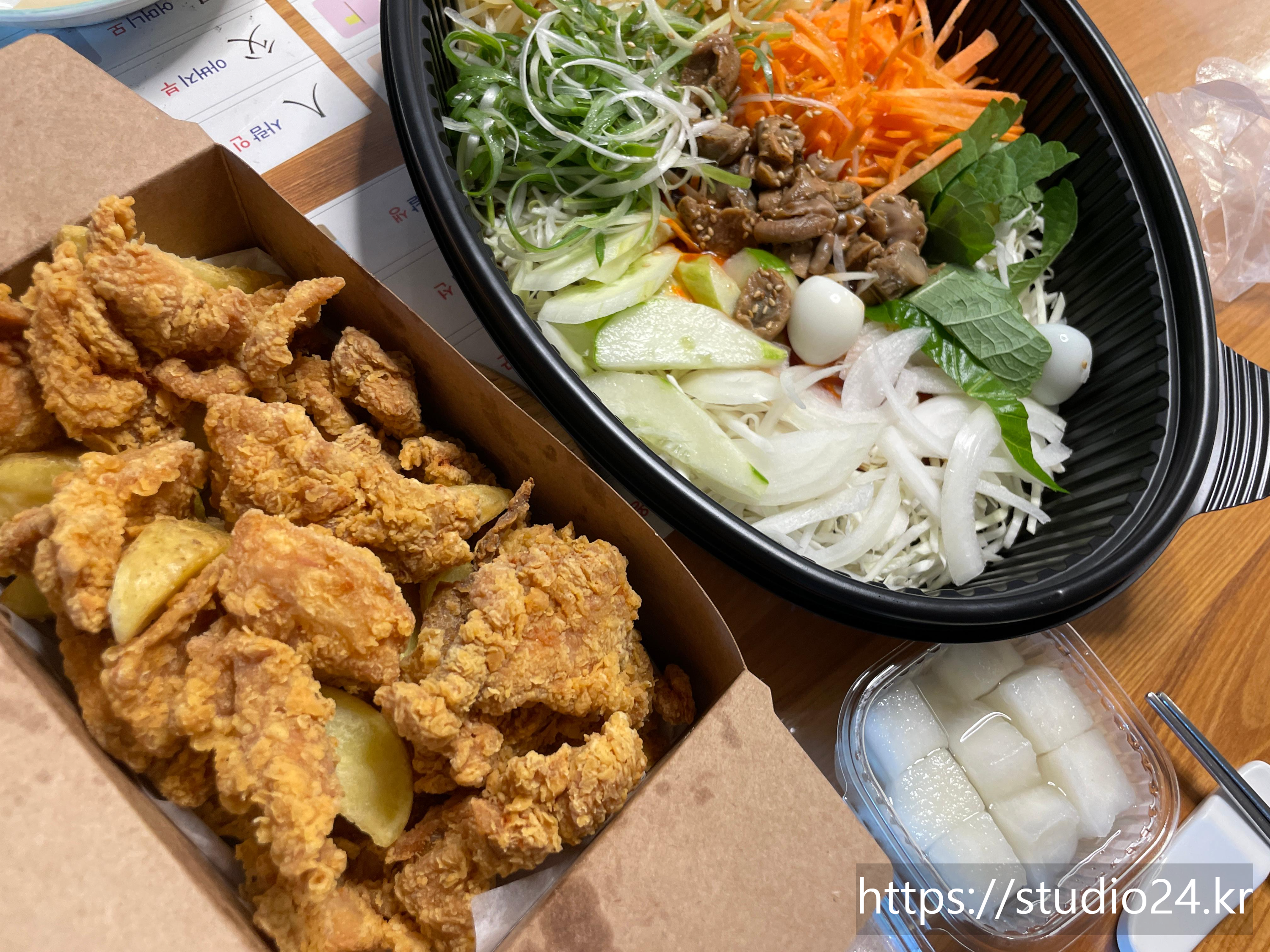 치킨에 골뱅이, 맥주가 생각에 주문해 보았습니다.