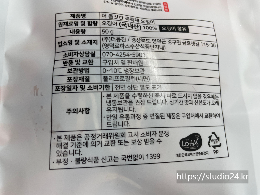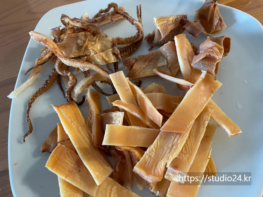 편백나무와 맥반석가마에서 건조한 오징어로 조미를 전혀 하지 않았다고 해서 주문해 봤어요.
