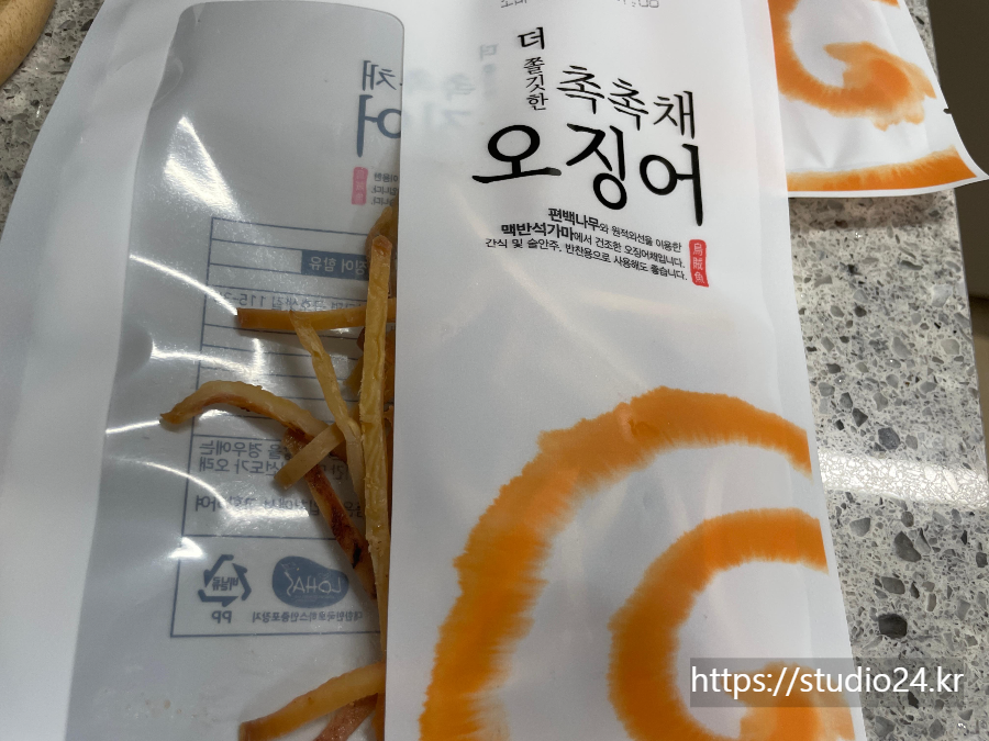 홈쇼핑 특가 찬스로 구입한 굽지 않고 먹는 촉촉한 오징어입니다.
