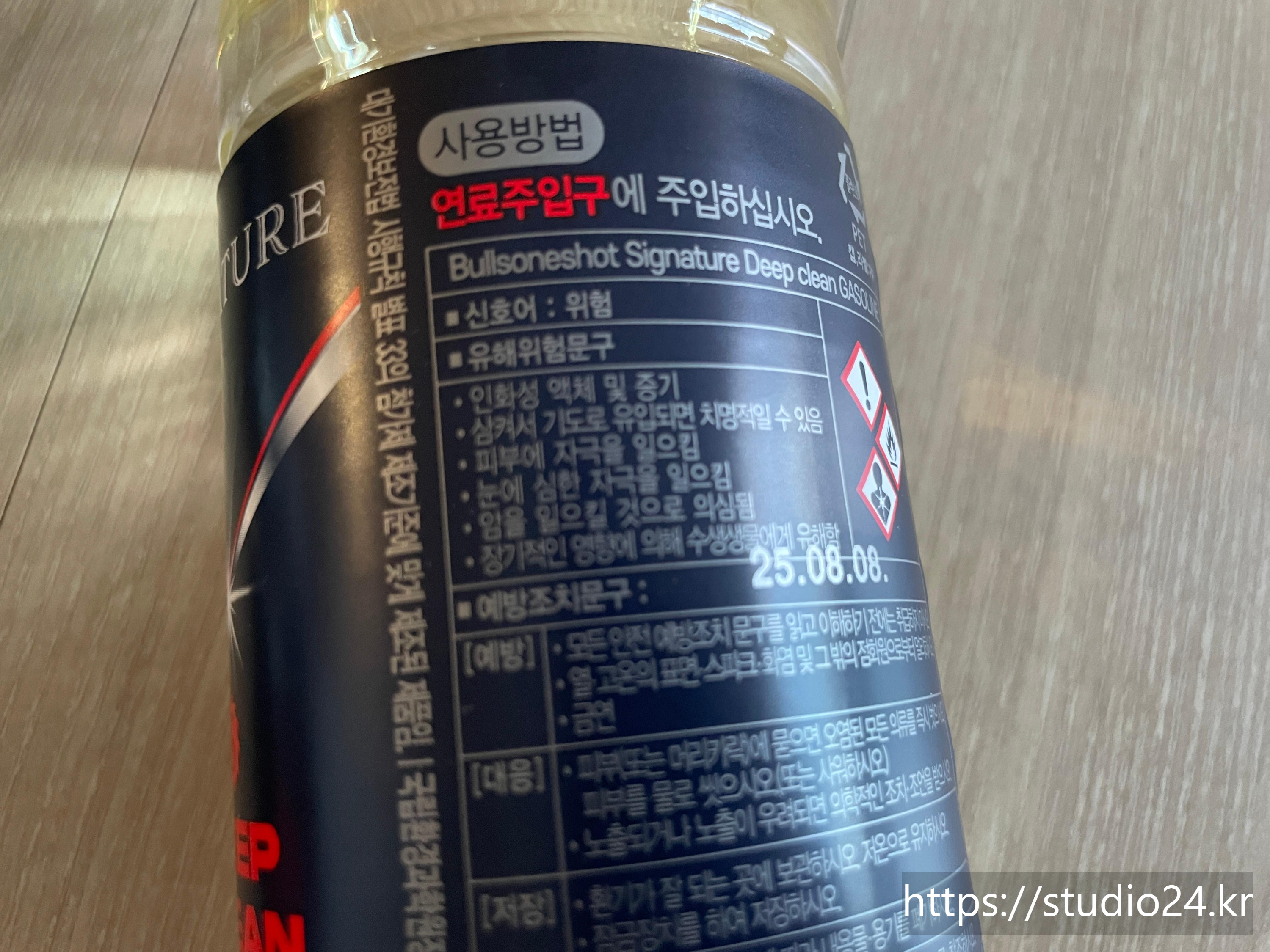 사용 방법은 주유구에 한 병을 넣으면 됩니다.