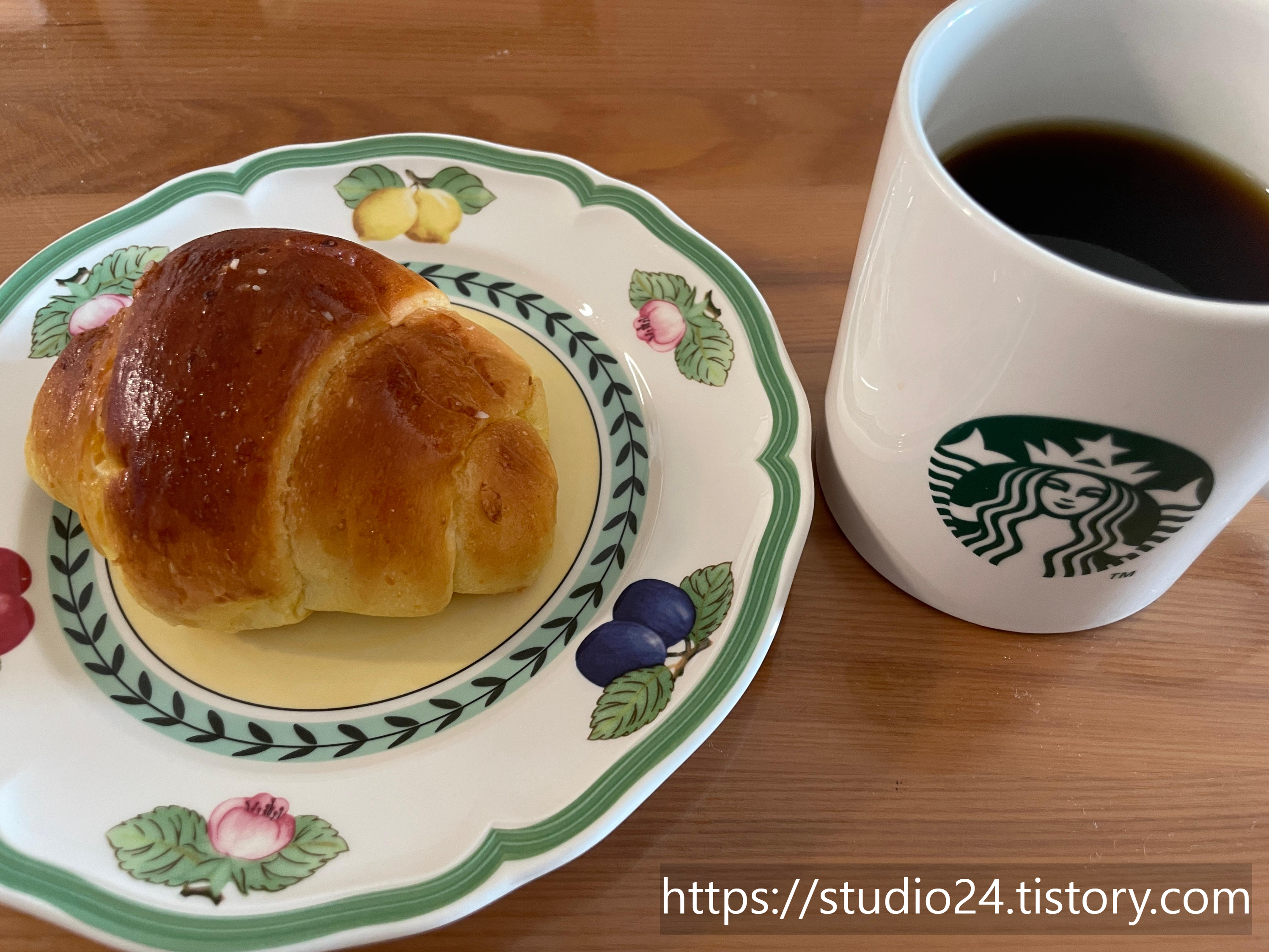 커피 한잔 그리고 옥수수소금빵으로 하루를 마무리합니다.
