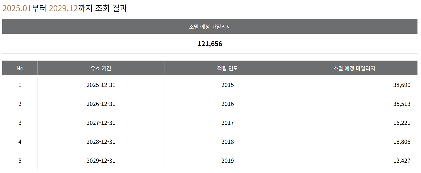 2025년 12월 38,690 마일리 소멸될 예정입니다.