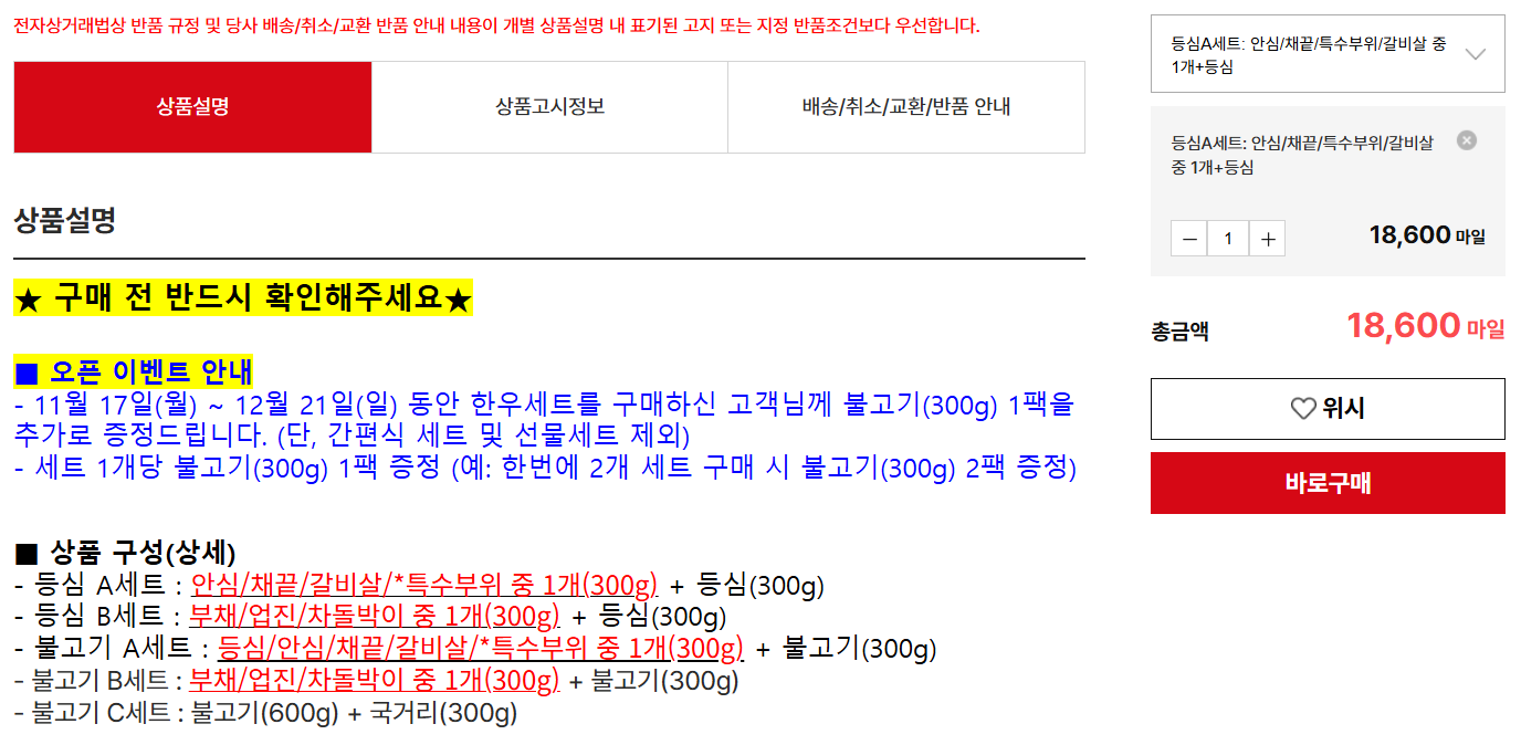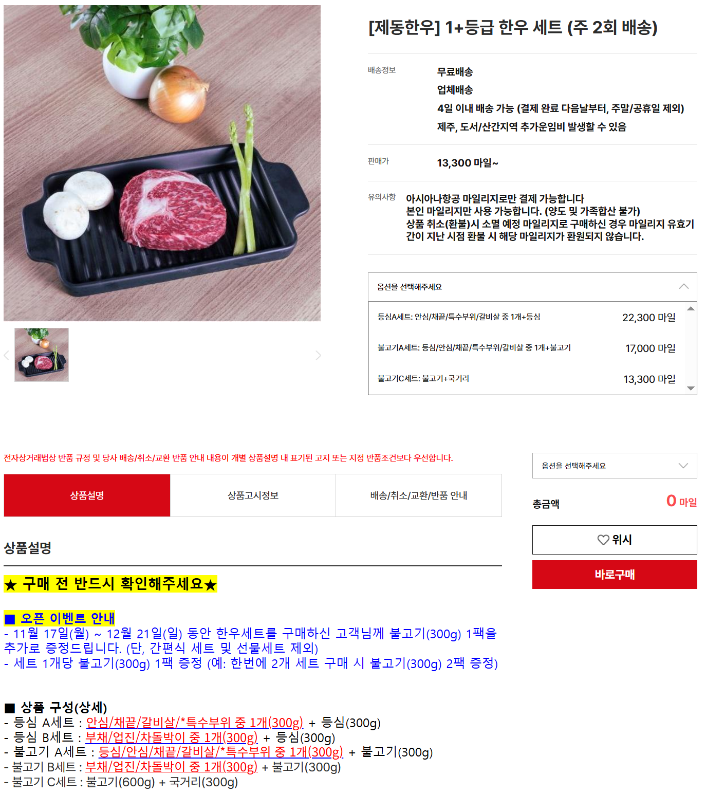 38,690 마일리지를 사용해야 하니, 1+ 하나, 1 등급 하나를 구입해 봅니다.
