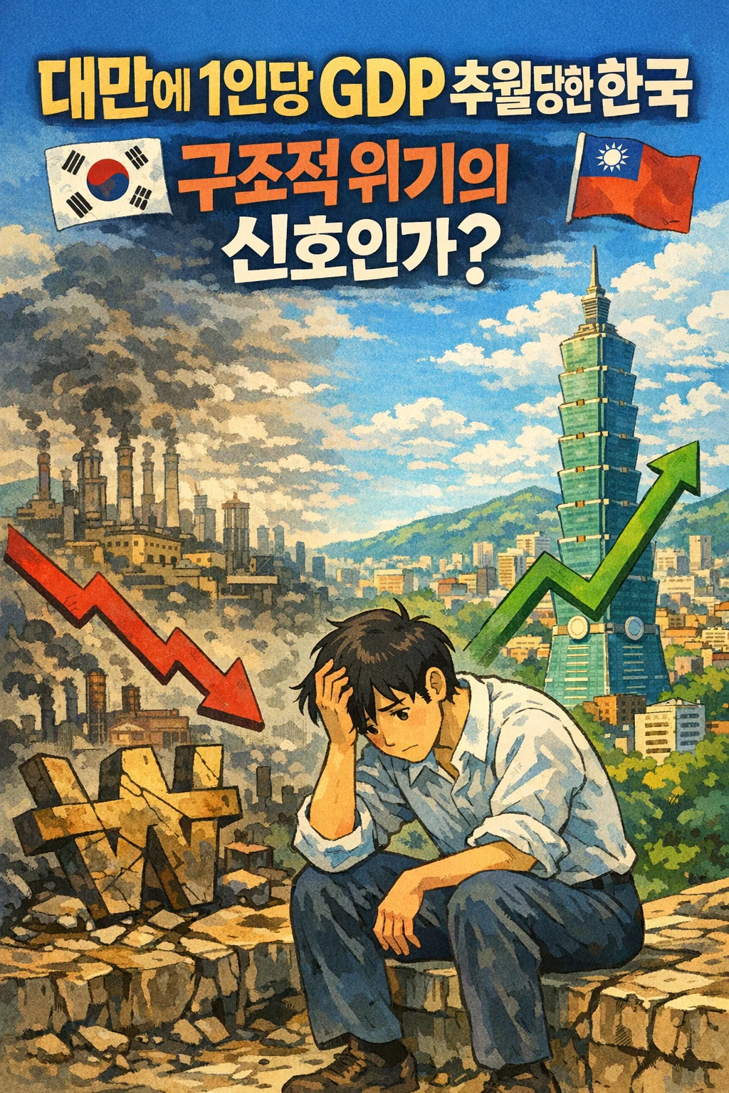한국의 1인당 GDP가 대만에 역전된 것은 숫자상으로는 “22년 만의 순위 뒤집기”지만, 그 이면을 들여다보면 저성장, 원화 약세, 인구 절벽, 산업 전략 차이가 복합적으로 얽힌 구조적 경고에 가깝습니다.