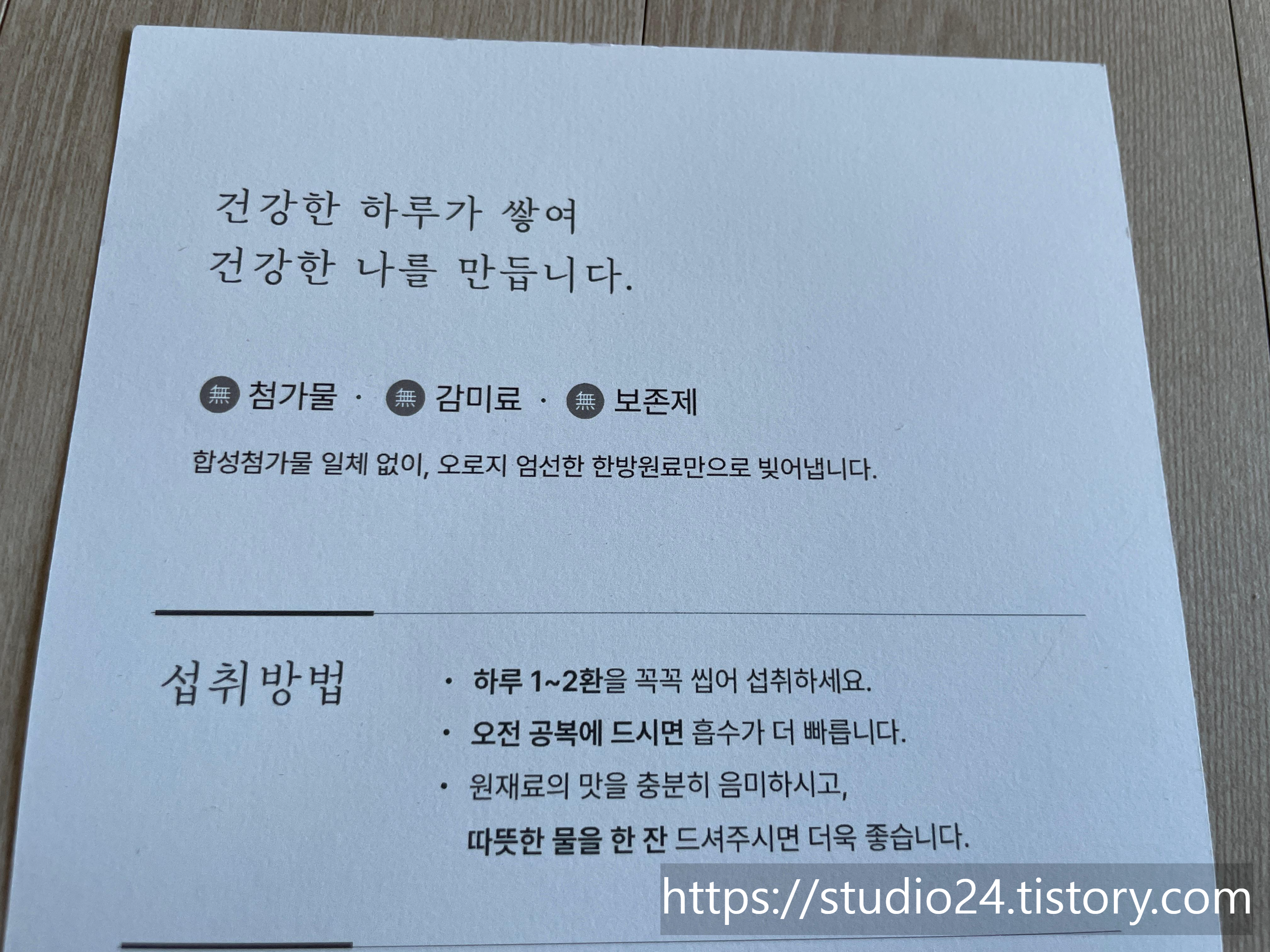 서비스로 쌍화보, 그리고 침향환 한 알 주셨어요.