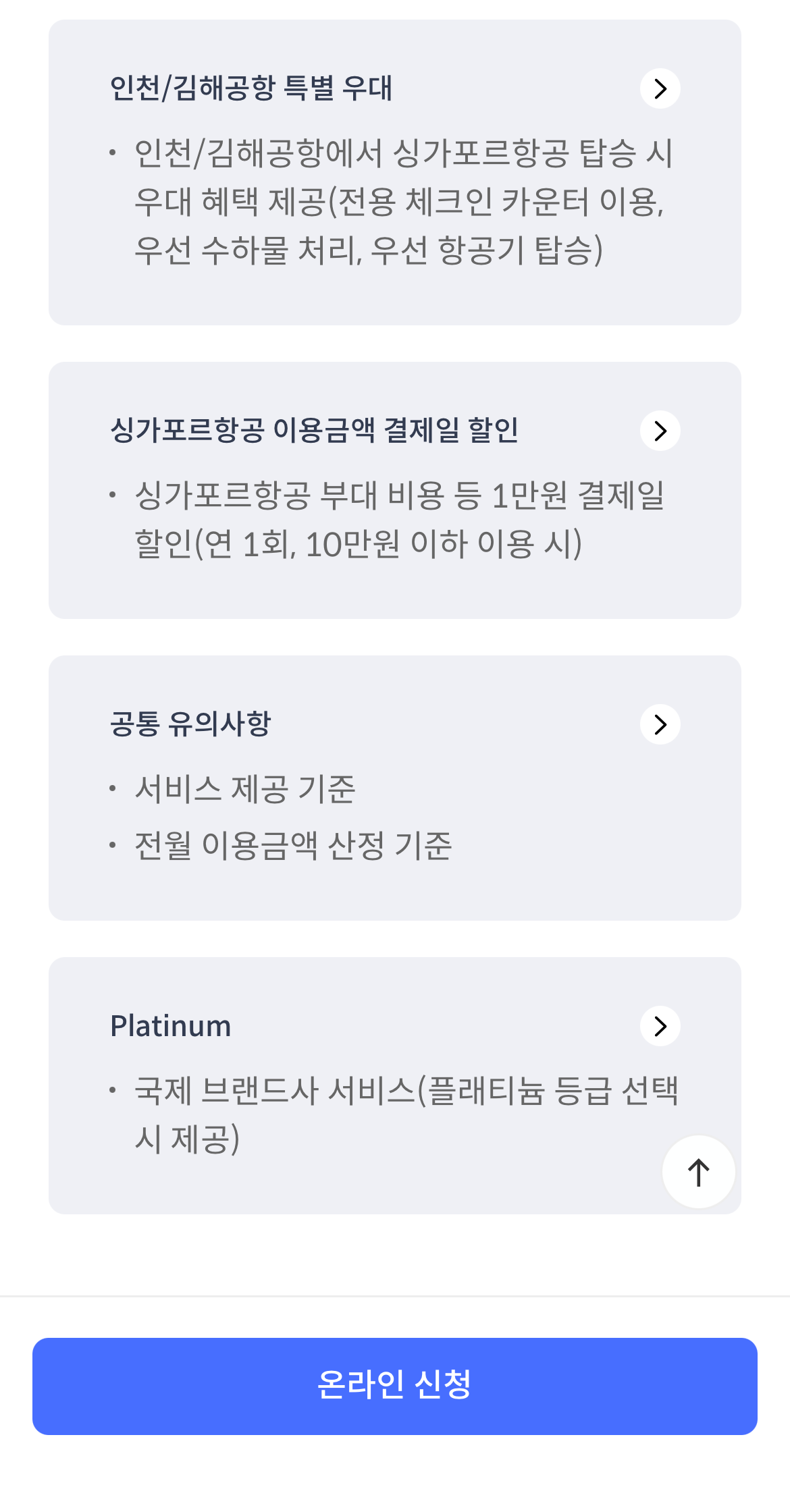 항공 포인트도 적립해야 하고, 싱가포르항공을 이용할 계획을 가지고 있기에 주저 없이 신청해 봅니다.