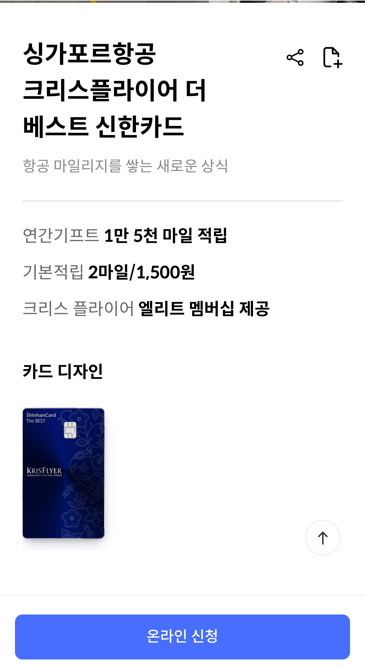 싱가포르항공 크리스플라이어 더 베스트 신한카드