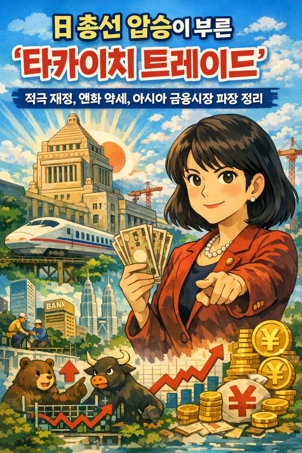 오늘은 2026년 2월 일본 총선 결과와 그 이후 예고된 확장적 재정 정책(적극 재정)이 엔화, 금리, 그리고 아시아 금융시장 전반에 어떤 변화를 가져올지 정리해 보겠습니다.