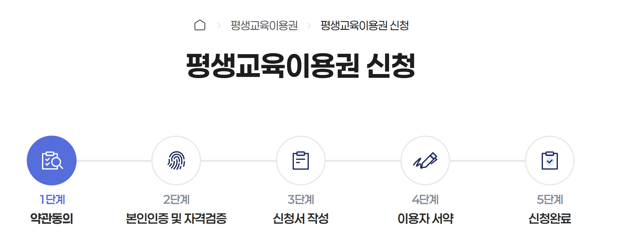 약관동의, 본인인증, 신청서 작성, 신청완료