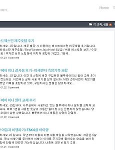728x90 반응형 전체 글3578 다시 시작된 미세먼지 공기청정기 가동 시작 안녕하세요. JS 입니다. 오늘 야외활동으로 외출했었는데요.며칠 좋았던 미세먼지가 다시 안 좋아 지려고 합니다.CAI 어플로 계속 확인할 수 없기에, 가끔 목이 아프거나 하면 한 번씩 살펴보곤 하는데요.집에 돌아와서 확인해보니, 그렇게 나쁘지는 않지만, 그래서 점점 미세먼지가 확산될 듯 싶은 느낌이 들었습니다. 집에 도착해서 살펴본 성남의 PM2.5 : 20측정시간은 01월 27일(토) 20:00 / 측정장소는 운중동으로 확인되고 있습니다. M5S 초미세먼지 측정기 측정값PM2.5 : 8 / PM10 : 10 / PM1.0 : 4오후 09시 24분. 느낌처럼 미세먼지가 심해지고 있습니다.CAI 어플 01월 27일(토) 21:00 / 측정장소는 모란역 PM2.5 : 29EarthWeather 어플로.. 2018. 1. 27. 티스토리 구글 웹마스터도구 등록 방법 안녕하세요. JS 입니다. 구글 검색에 나오게 하려고 사이트 등록을 진행합니다.네이버도 등록했으니, 이번에는 구글 등록! 구글의 경우 검색량이 많아, 꼭 등록해 주면 좋습니다.구글 역시 웹마스터도구 사이트로 되어 있고, 손쉽게 등록할 수 있습니다.등록 후 검색 노출이 되는지는 확인되지 않습니다.너무 많은 검색결과 중 네이버처럼 블로그만 따로 빼서 검색되질 않네요.차후 검색 노출에 따른 결과는 별도 리포팅 해보겠습니다.등록 후 일주일 정도 지켜보았으나, 유의미한 결과는 얻지 못하고 있습니다.하루 검색어 반영 2~3 정도입니다. 구글의 경우 상위노출에 걸리면 쉽게 떨어지지 않고, 오랜 시간 지속하여 방문자가 많이 유입된다고 합니다.내가 등록한 글들이 잘 수집되어 상단에 노출되면 너무 좋겠지요! 자~ 구글 웹.. 2018. 1. 26. 티스토리 네이버 웹마스터도구 등록 방법 안녕하세요. JS 입니다. 네이버 검색에 잘 나오는 웹사이트를 만들기 위해 네이버 웹마스터도구에 등록해 봅니다.검색엔진 최적화 가이드도 해주고, 실제 검색 노출에 대한 리포트를 받을 수 있어 상당히 유용합니다. 네이버 블로그의 경우 네이버가 자동으로 검색 등록을 해주지만, 다른 사이트의 블로그는 직접 등록해야 합니다. 티스토리의 경우 직접 등록해줘야 검색이 반영됩니다. 최근에는 구글을 많이 사용하지만, 그래도 우리나라의 경우 네이버 사용자가 많기에 포기할 수 없습니다.예전에 네이버 검색 등록을 통해 외부 사이트가 등록되었지만, 네이버 웹마스터를 통해서만 등록될 수 있게 변경되었습니다. 중요성은 인지 하였고, 실제 등록해 보기로 합니다.또한, 등록 후 일주일 경과 시 어떻게 나오는지도 살펴보기로 합니다. .. 2018. 1. 25. 티스토리 패스트부트 fastboot 스킨 변경하기 안녕하세요. JS 입니다. 구글 애드센스는 계속 승인거절 상태입니다.저품질로 확인되고 있다하여, 여러 가지 수정을 진행하고 있습니다. 우선, 글 작성시, 임의적인 문단 띄기는 최대한 삭제해 보았습니다.보기 어려워도, 컴퓨터가 임의로 확인하면서, 글이 연결되지 않으면, 저품질로 확인될 가능성이 높다고 합니다. 이번에는 티스토리 스킨을 한번 변경해 보기로 합니다.우선 카테고리는 너무 많이 나열되어 있던 것을 큰 폴더로 보내고, 하부로 내리면서 조금 간결하게 수정했습니다.그리고 스킨 변경 작업에 돌입합니다.실제 가장 사용하고 싶은 스킨들이 없어 직접 만들어야 하나 했는데, 다행히 애드센스에 최적화된 스킨을 찾았습니다. "fastboot" http://blog.readiz.com/ 스킨을 제작해 주신 Readi.. 2018. 1. 24. 베스트웨스턴 제주호텔 후기 안녕하세요. JS 입니다. 제주 출장 시 이용하는 베스트웨스턴 제주호텔 후기입니다. 베스트웨스턴 제주호텔 / Best Westem Jeju Hotel4성급 / 뷔페 레스토랑 보유 / 수영장 없음 / 주차장 보유노형동에 위치해 공항과 가깝고, 1층에 스타벅스가 있음.가격대가 괜찮고, 온돌방을 보유하고 있어 어린 자녀가 있을 경우 편리하게 이용 가능합니다. 숙박한 룸은 디럭스온돌 302호 입니다.3층은 대부분 온돌방으로 구성되어 있습니다.가끔 아이들 목소리가 시끄러울 때가 있는데, 온돌을 좋아하시는 분들은 고려하셔야 해요.저도 온돌을 좋아하기에 인지하고 숙박합니다. 개인적 이용 평가체크인 ★★★★★체크아웃 ★★★★★룸컨디션 ★★★★★청소상태 ★★★★★룸크기 ★★★★직원진절 ★★★★★종합 ★★★★☆ 저는 상당.. 2018. 1. 23. 블루에어 미니 실사용 후기 - 미세먼지 측정기록 포함 안녕하세요. JS 입니다. 이전 포스팅에 예전 구입했던 블루에어미니 필터 교체 후기를 남겼는데요.이번에는 실제 사용 후기를 남겨 봅니다. M5S 초미세먼지 측정기를 활용했던 기록을 포함하고 있어, 구입하시는 분들은 참고하세요. 구입시기 : 2017년 03월 30일 / 홈쇼핑에서 10만원 이하로 구입필터가격 : 2017년 공구로 개당 2만원대 구입필터기간 : 대략 6개월, 실 사용은 10개월 M5S - 초미세먼지 측정기로 측정한 실제 기록측정일 : 2017년 04월 03일동작전 PM2.5 : 88동작후 PM2.5 : 45별도측정 PM2.5 : 4별도측정은. 무식한 방법이지만, 봉지를 씌워 측정했습니다. 회사 자리가 구석이기도 하고, 공기가 모이는 장소라 과연 얼마나 안 좋을까 싶었는데요.실제 측정기로 측정.. 2018. 1. 22. 이전 1 ··· 472 473 474 475 476 477 