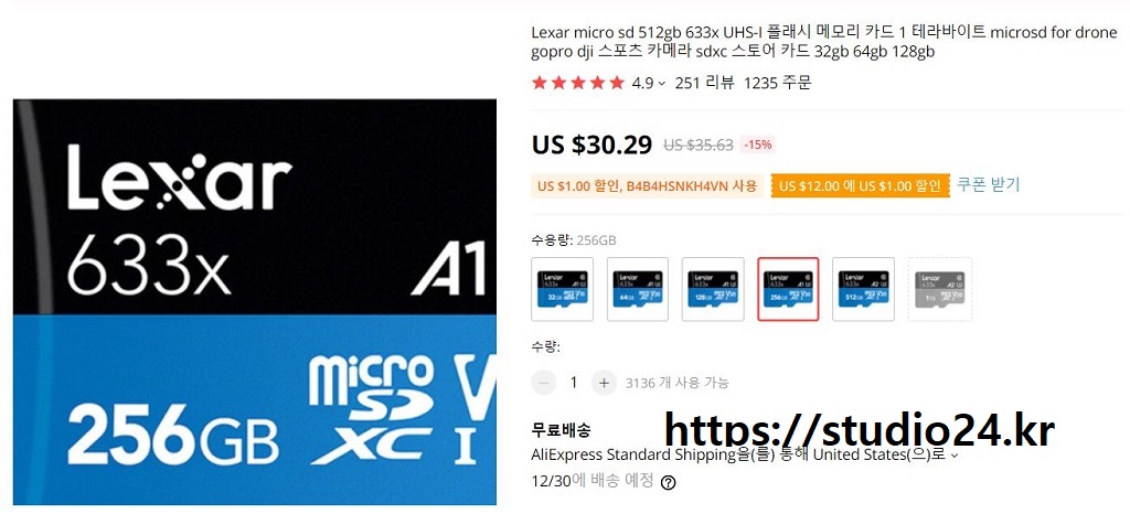 알리 할인기간에 구입한 렉사 마이크로 SD 256GB가 도착했습니다.