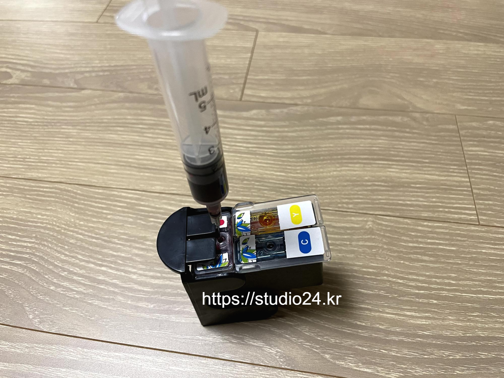 잉크를 주사기에 넣고 쭉~