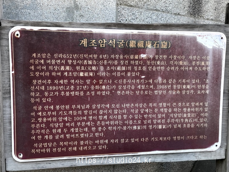 계조암 석굴은 진덕여왕 6년 자장율사가 창건한 사찰입니다.