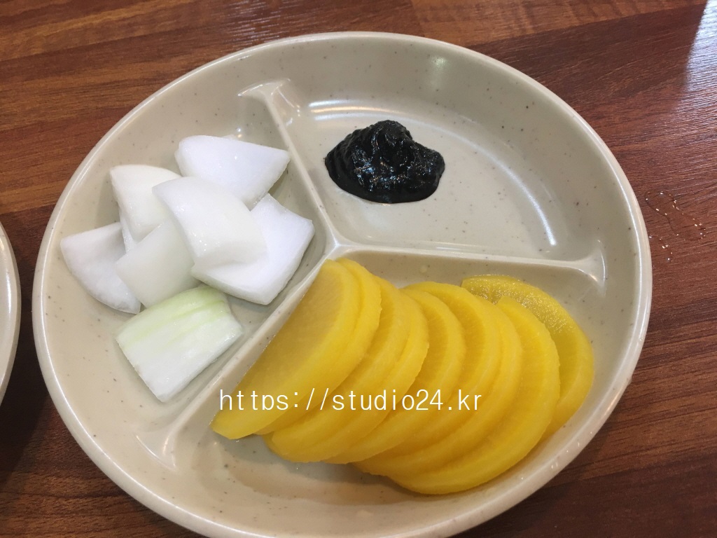 반찬은 딱 2가지, 신 맛없고 신선했습니다.