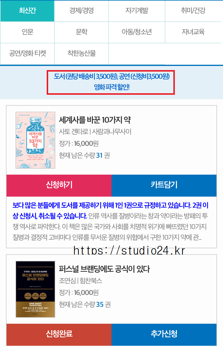 다만, 신청 도서는 한정수량입니다.