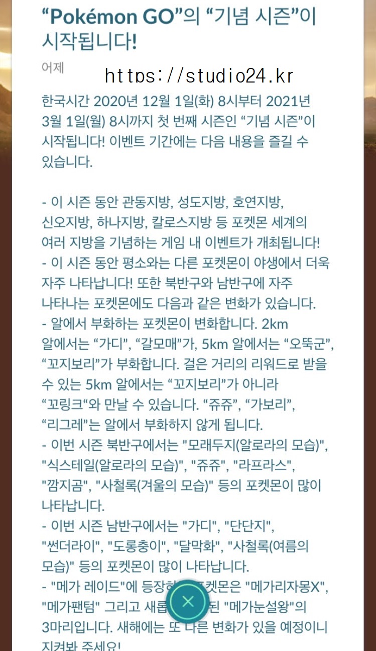 포켓몬 고 기념 시즌 시작