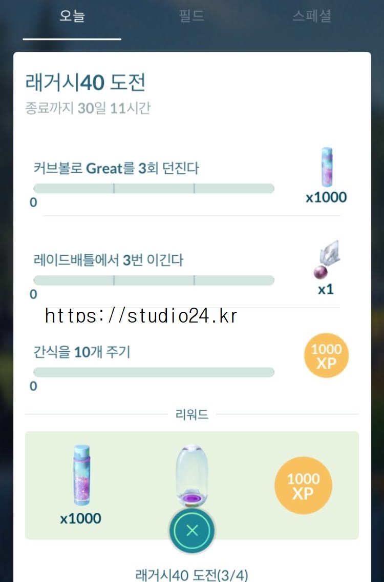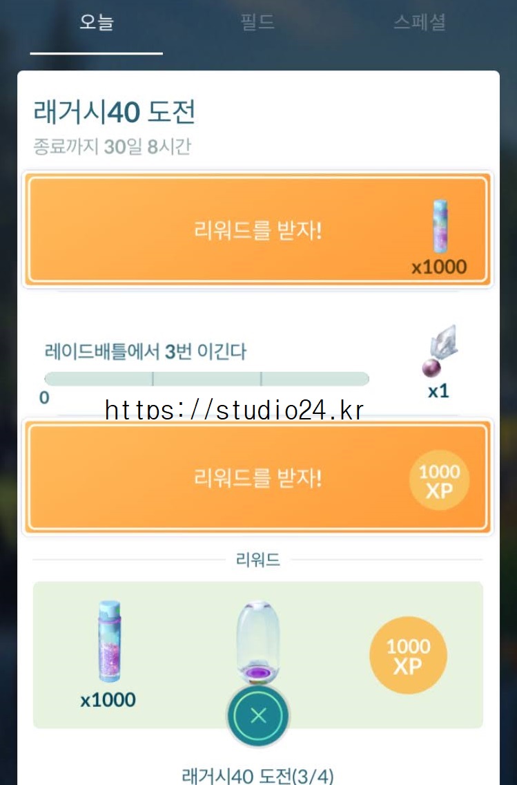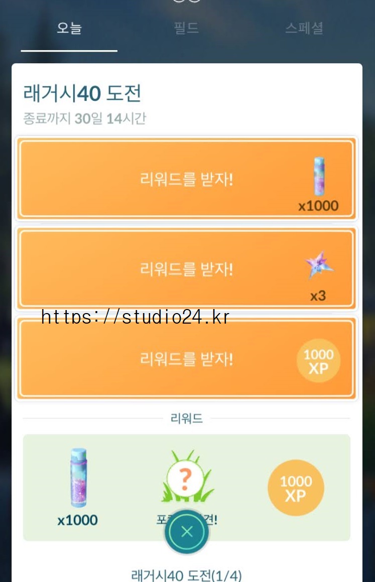 래거시 40 도전 미션 완료 보상 포켓몬은 바로!