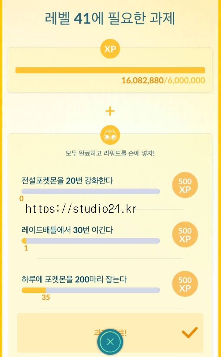 포켓몬고, 레벨 상향 50레벨 도전, 41레벨 미션 목록