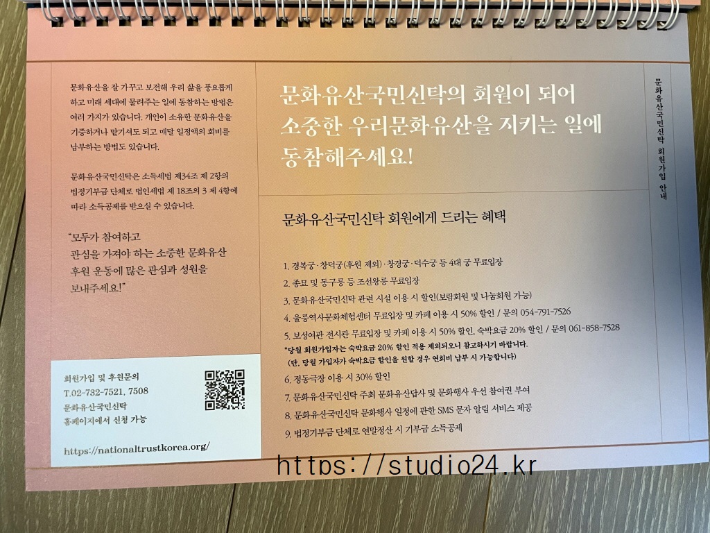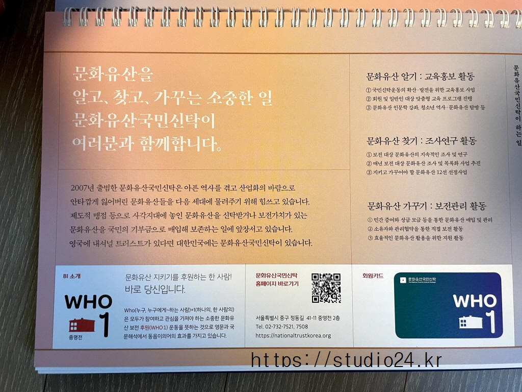 문화유산 국민신탁에서 2021년 탁상달력을 보내주었어요.