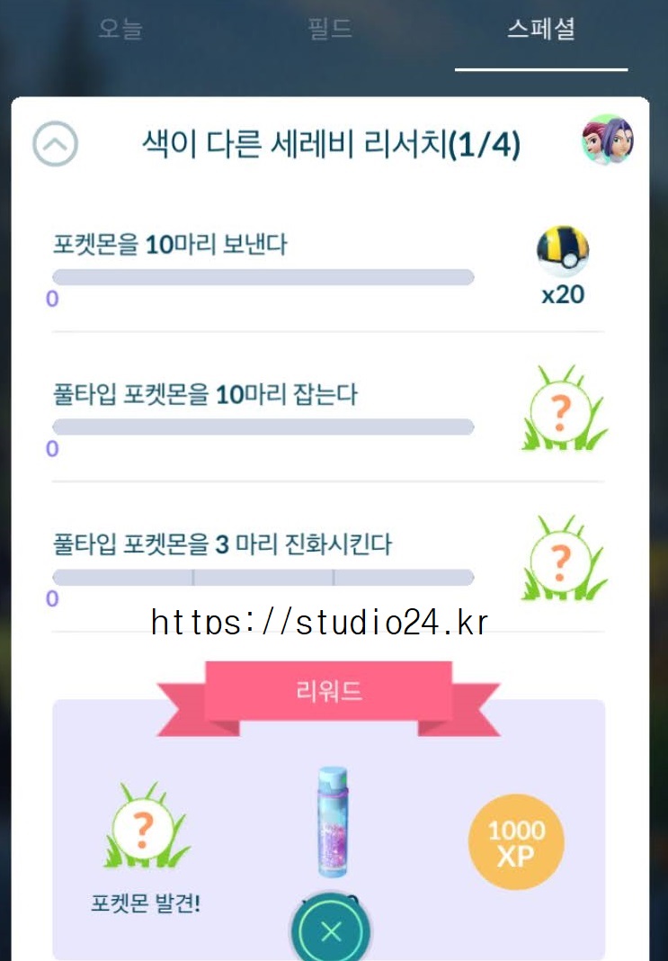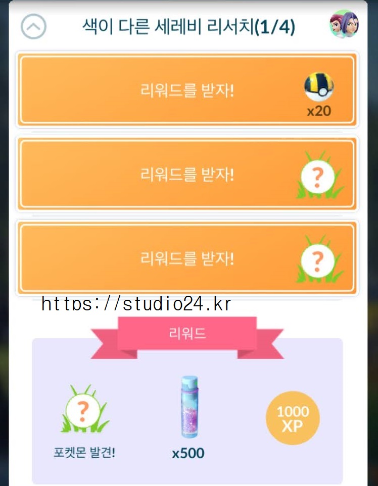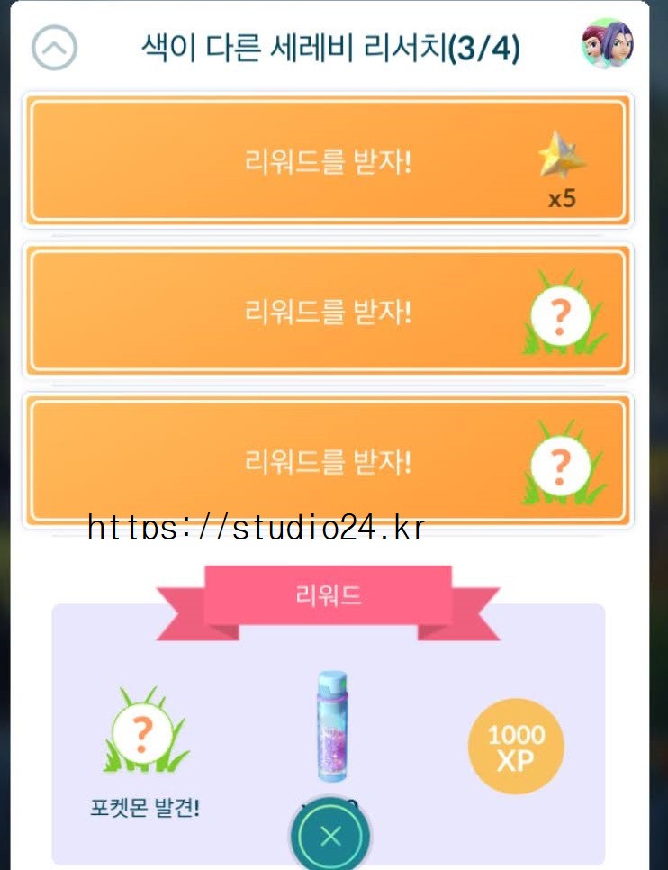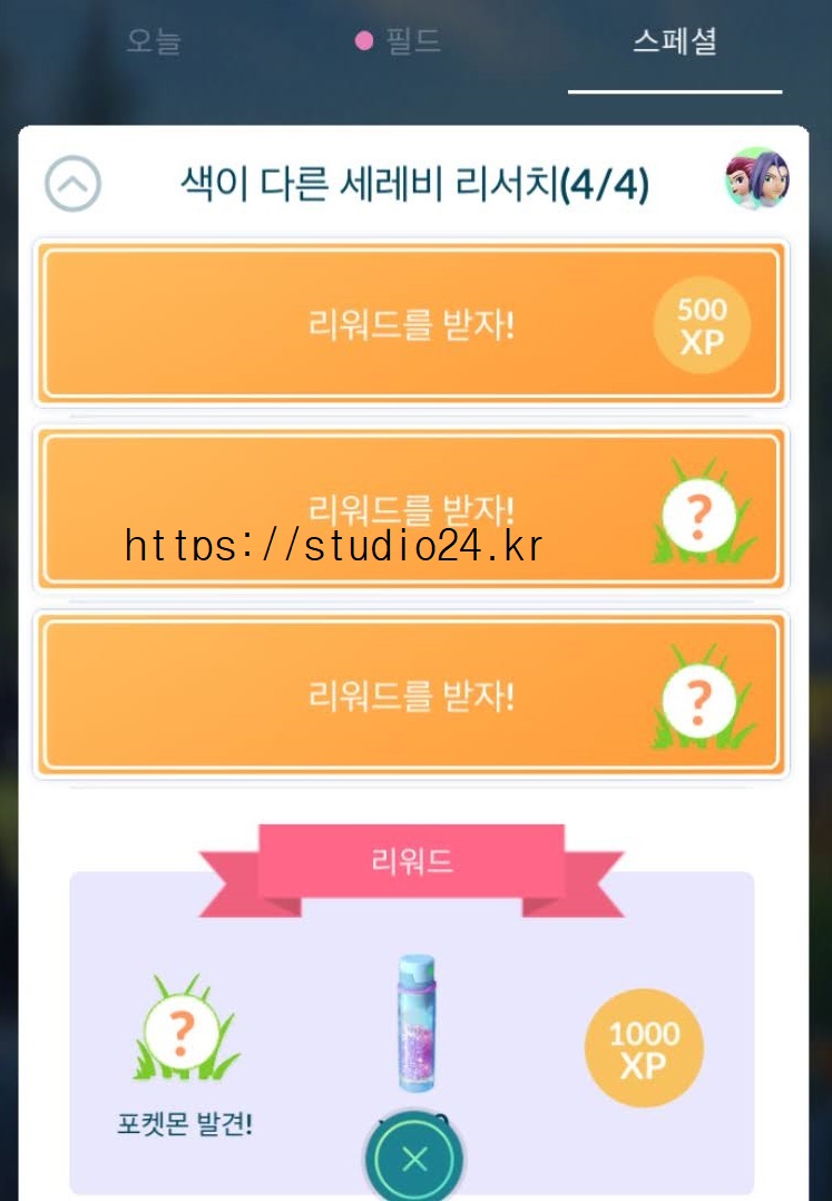 포켓몬고 색이 다른 세레비 리서치를 완료했습니다.