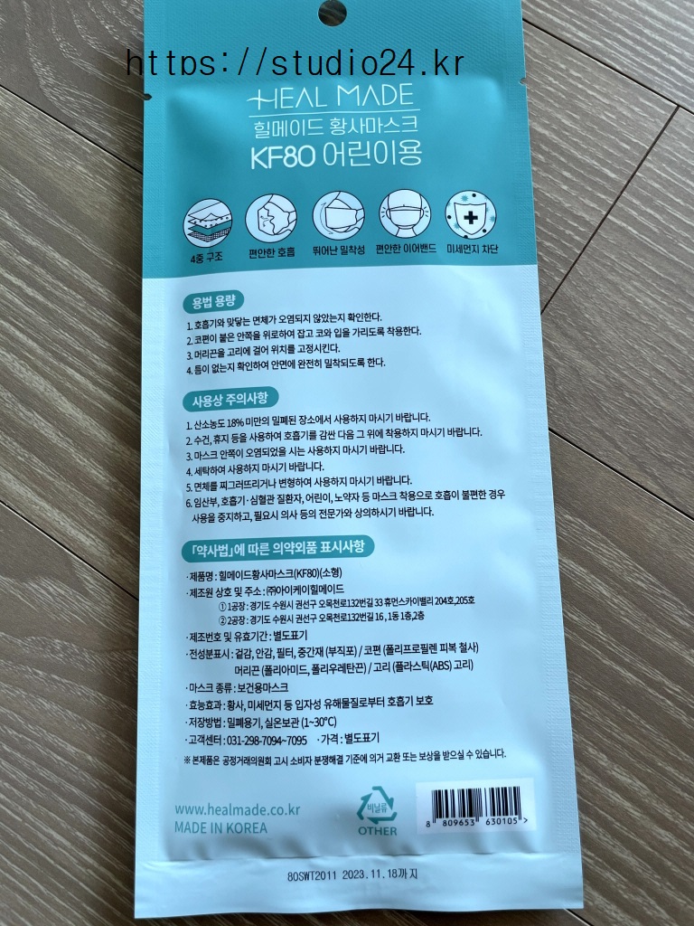 코로나 사태가 심각해서 추가로 KF80 아동용 마스크를 구입했습니다.