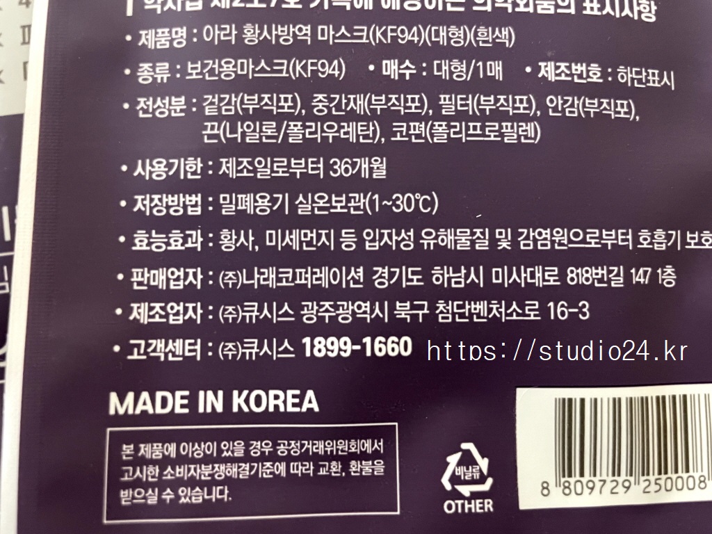 마스크는 겨울을 감안하여 KF94를 보내주었어어요.