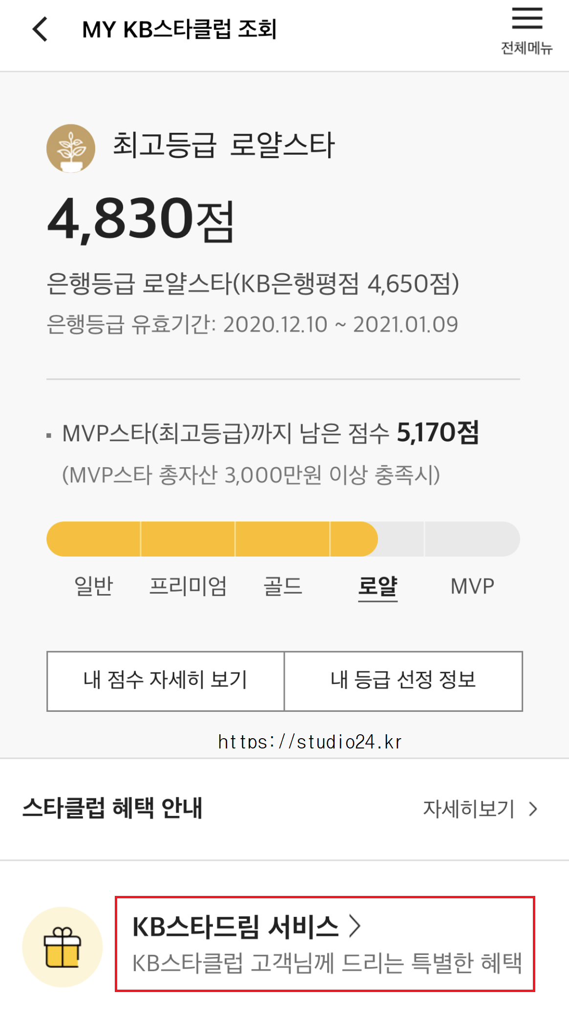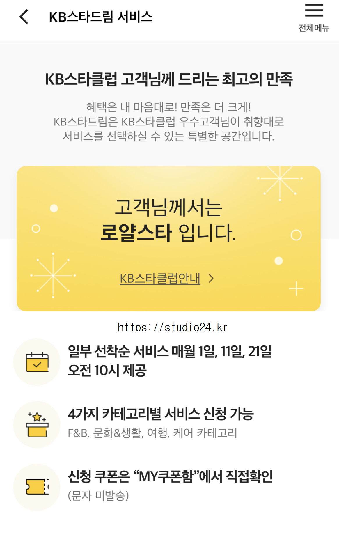 KB스타드립 서비스를 클릭해서 보면 혜택을 받을 수 있는 창으로 넘어갑니다.