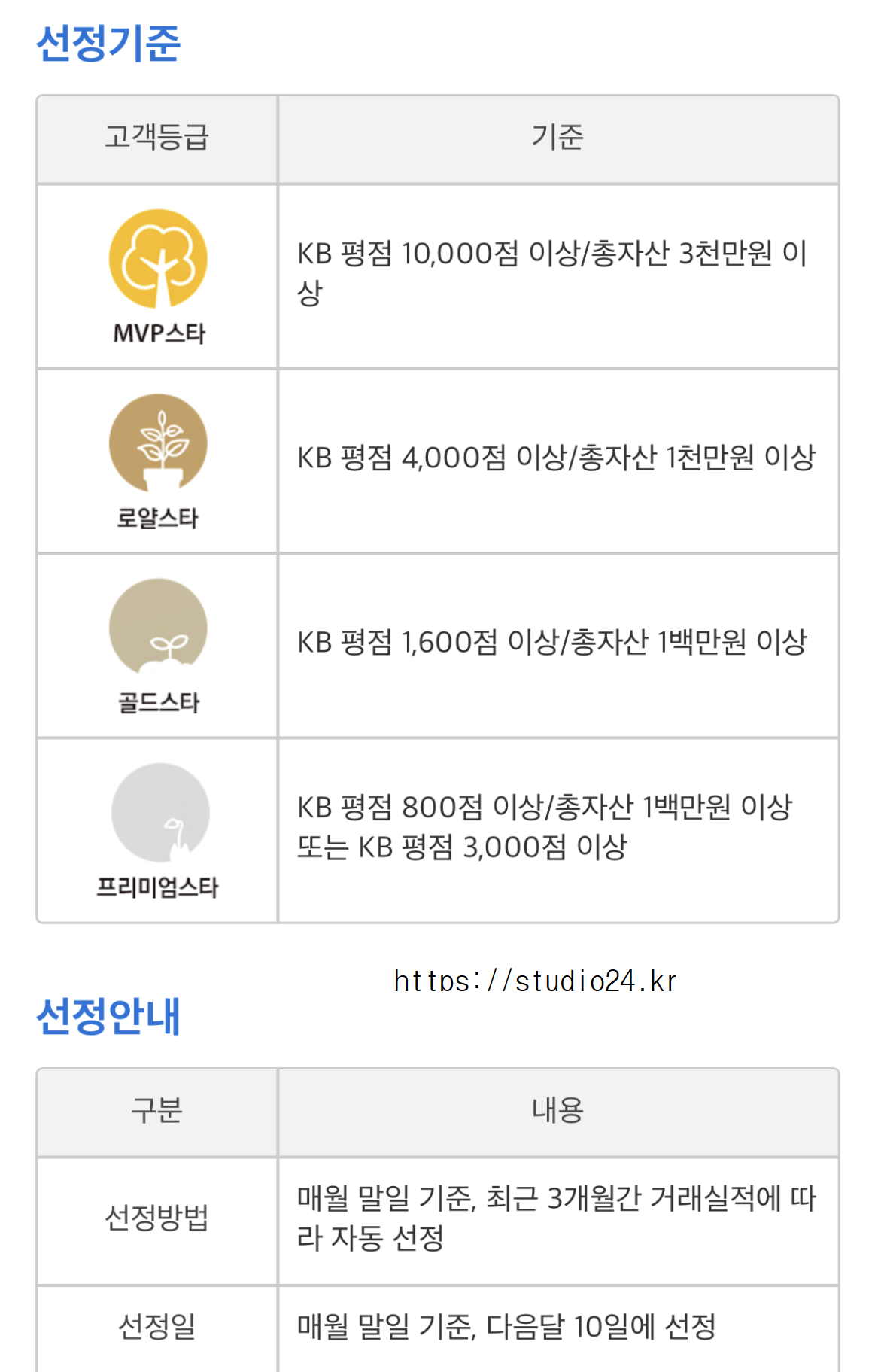 KB스타클럽의 선정기준은 아래와 같습니다.