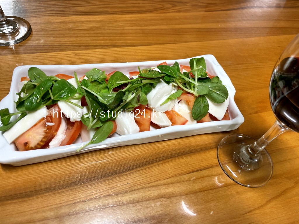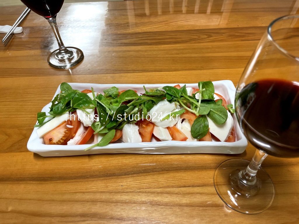 와인에는 역시 짜파.. 아니 모차렐라 치즈 토마토 샐러드죠!