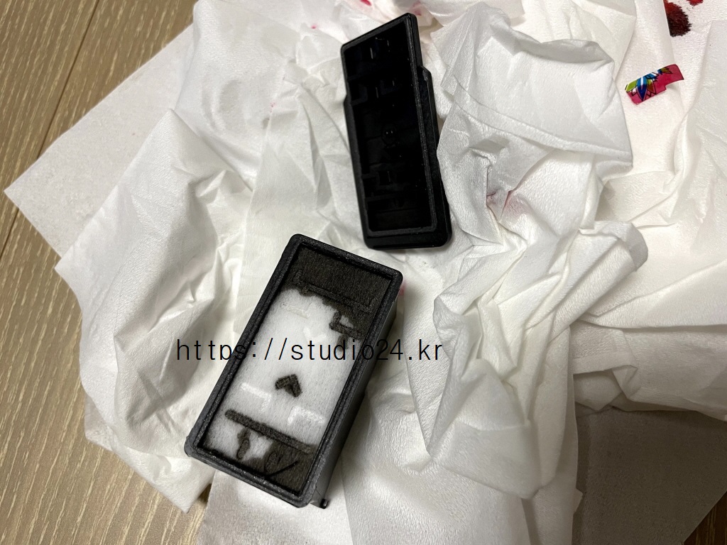 컬러는 잉크를 주입했고 검정 잉크는 내부 솜을 갈아 주었습니다.