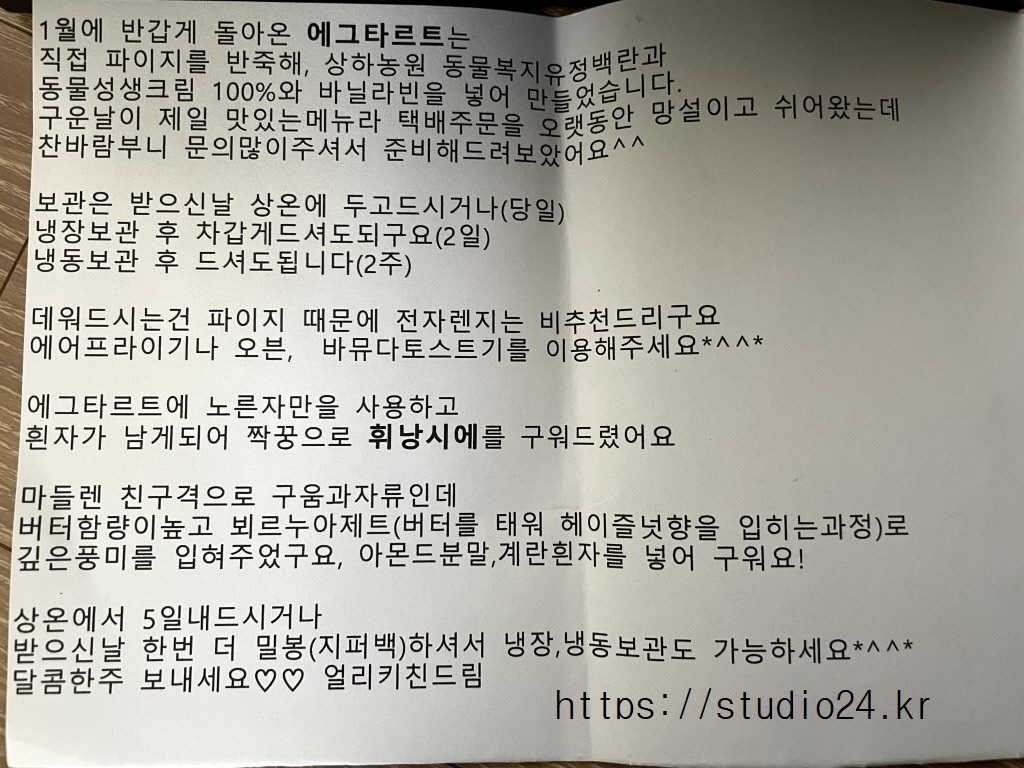 너무 맛있게 먹어 작년에 이어 올해도 에그타르트를 주문했네요.