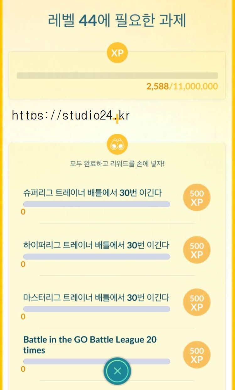 이제 44 레벨에 필요한 과제를 알아볼게요.
