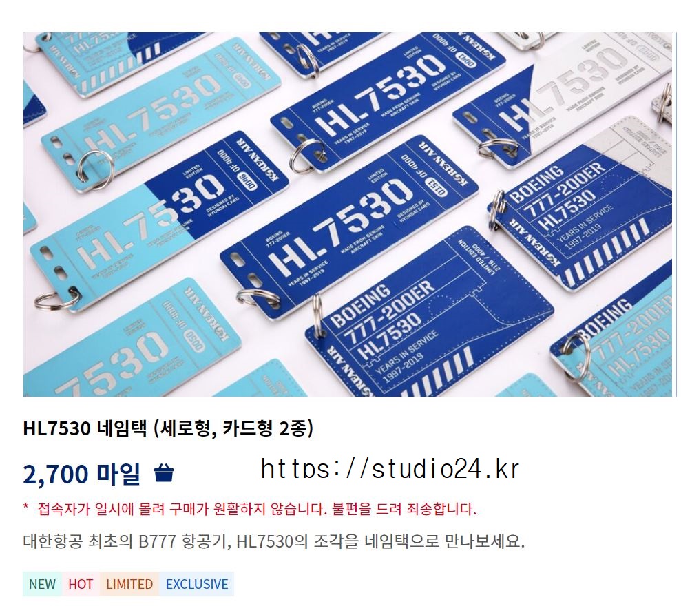 HL7530 네임택, 대한항공 한정판 네임택 구입 성공