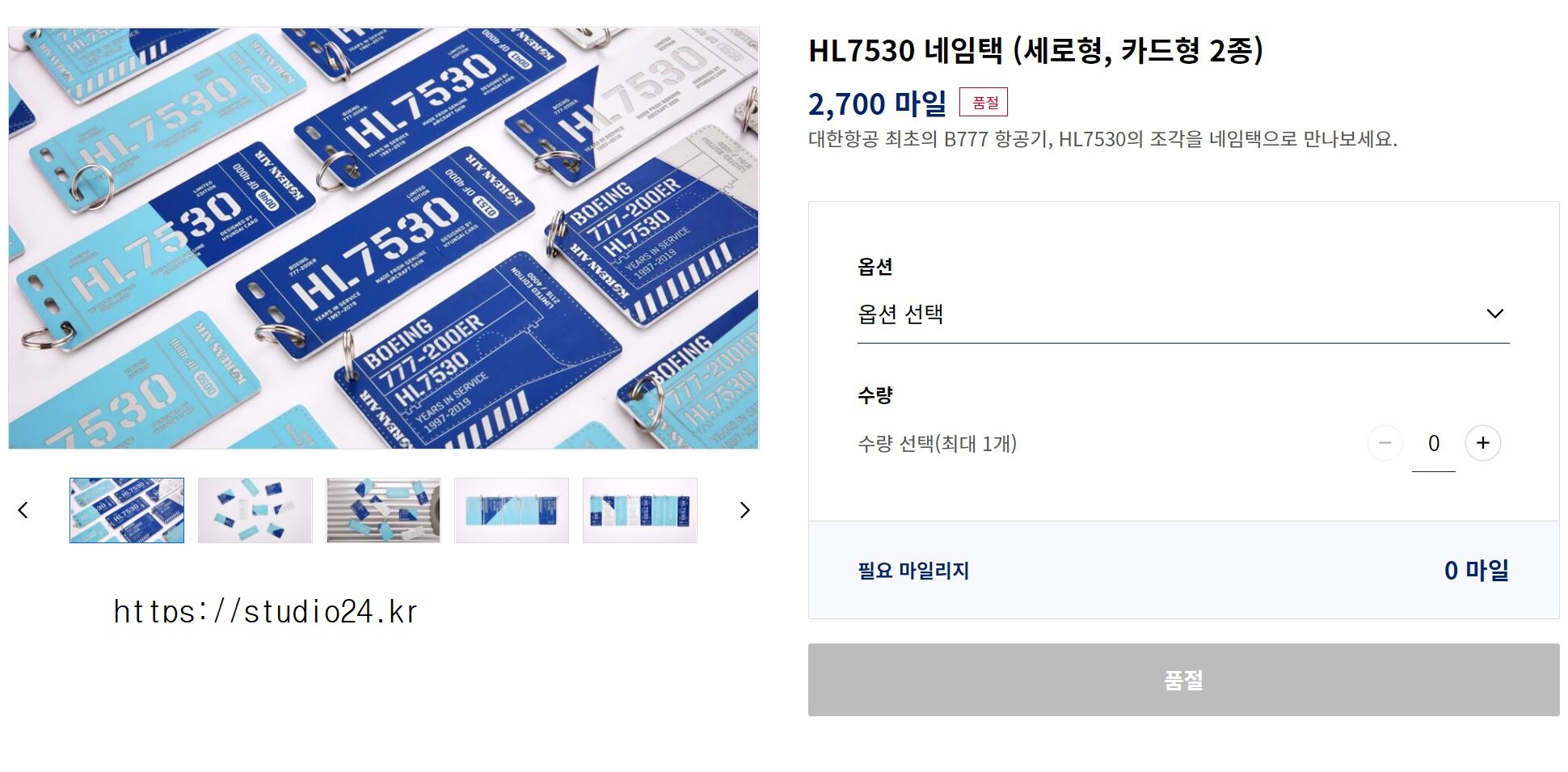 대한항공 HL7530 네임택 구입 성공하고 후기 남겨보아요.
