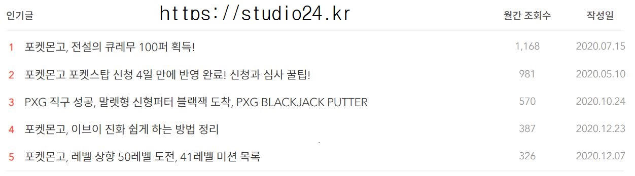 1~5위의 인기글 중 4개가 포켓몬고 관련 내용이었습니다.