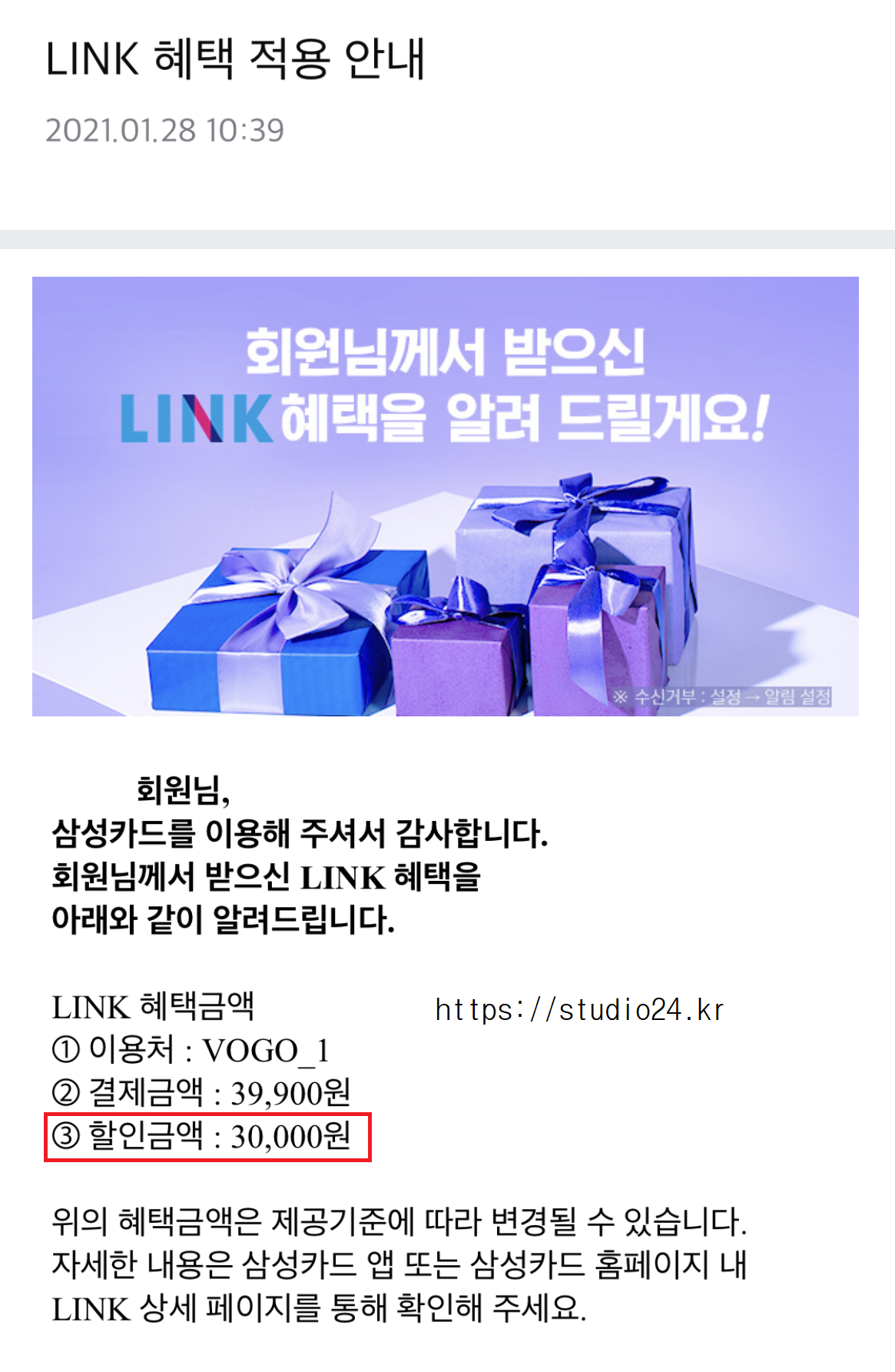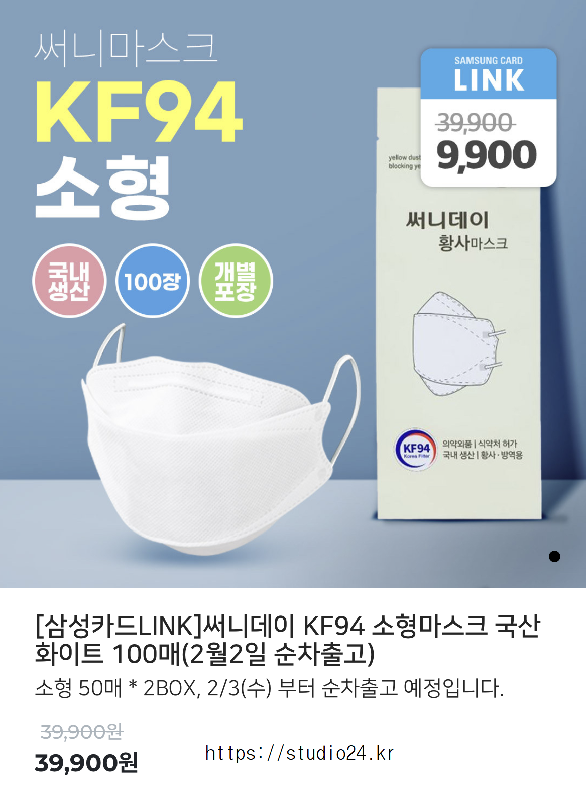 이번 KF94 소형 마크스는 삼성카드 LINK 핫딜 행사로 구입했어요.