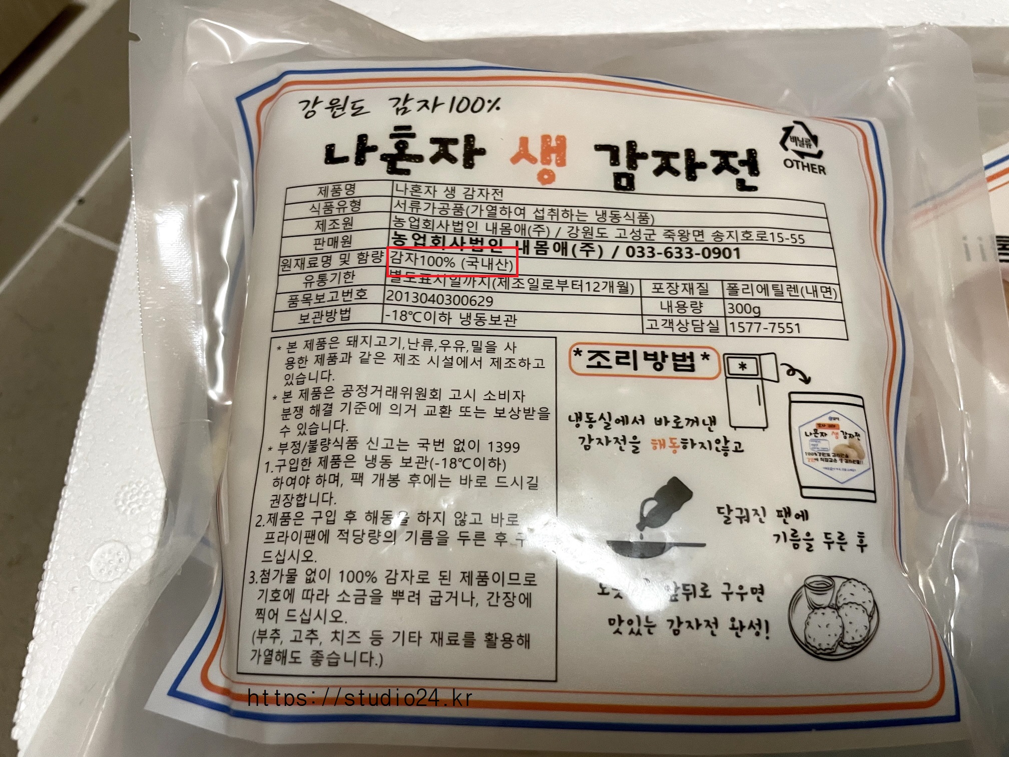 100% 국내산 감자 사용