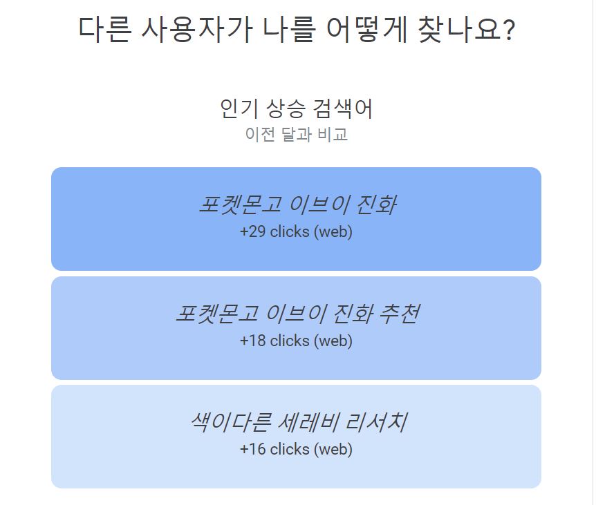 검색어는 포켓몬고 이브이진화의 글이 가장 높았습니다.