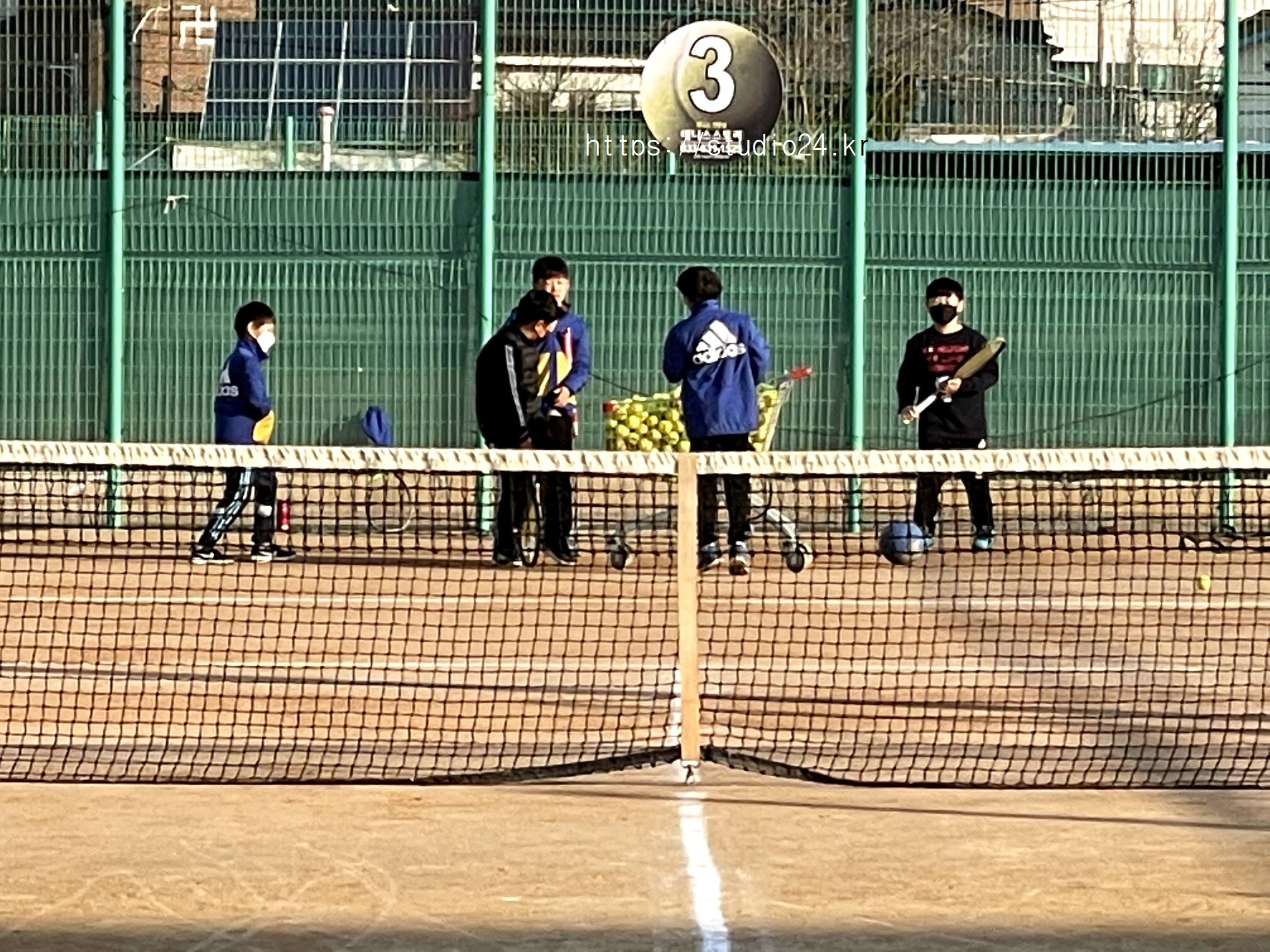 아들은 겨울에도 신나게 테니스 연습을 하고 있어요~