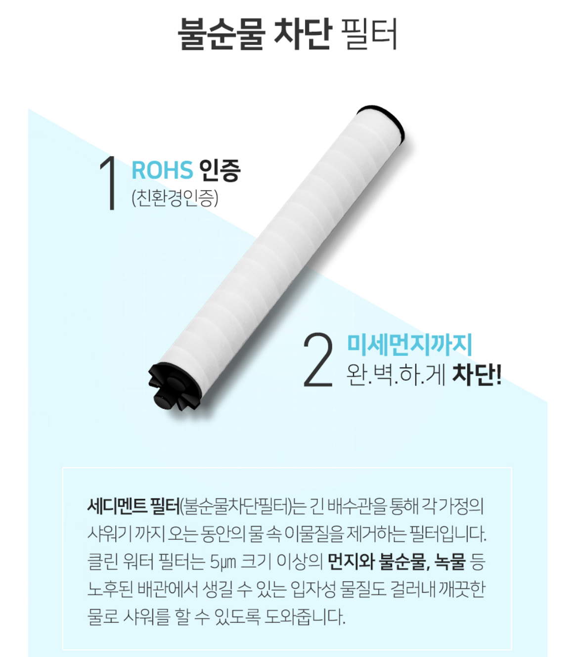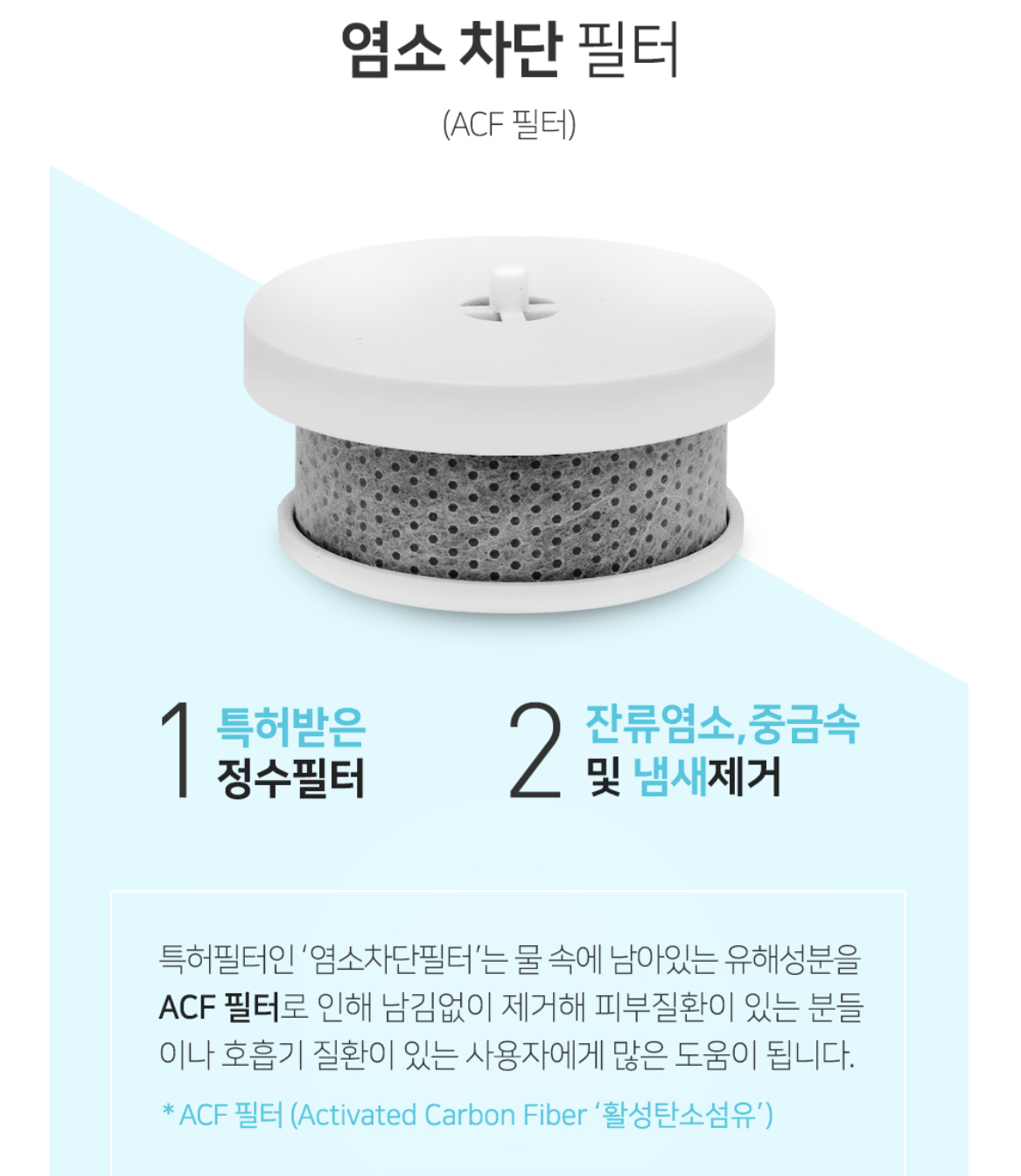샤워기의 경우 불순물 차단 필터와 염소 차단 필터 2중 구조로 되어 있었어요.