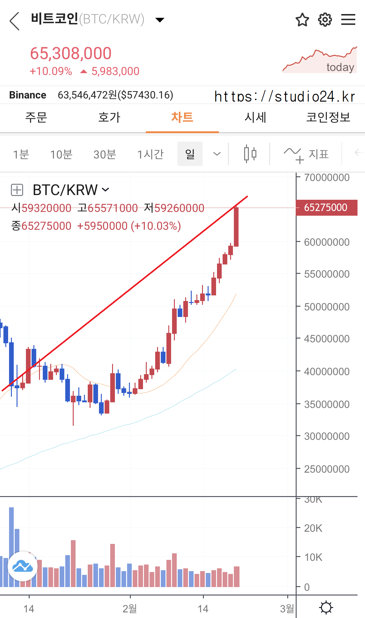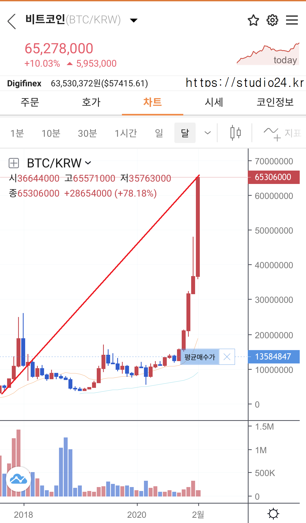 토요일 오후 11시 확인해 보니 6,500만원을 돌파했네요.