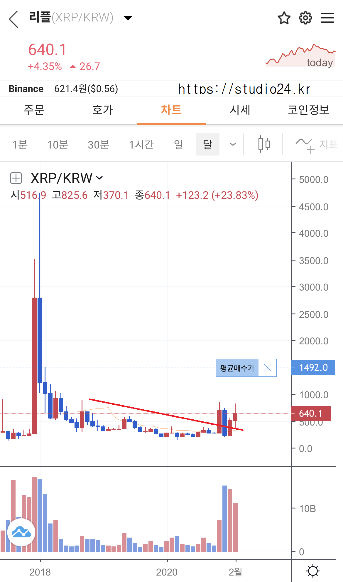 리플은 아직도 많이 올라야 본전입니다.
