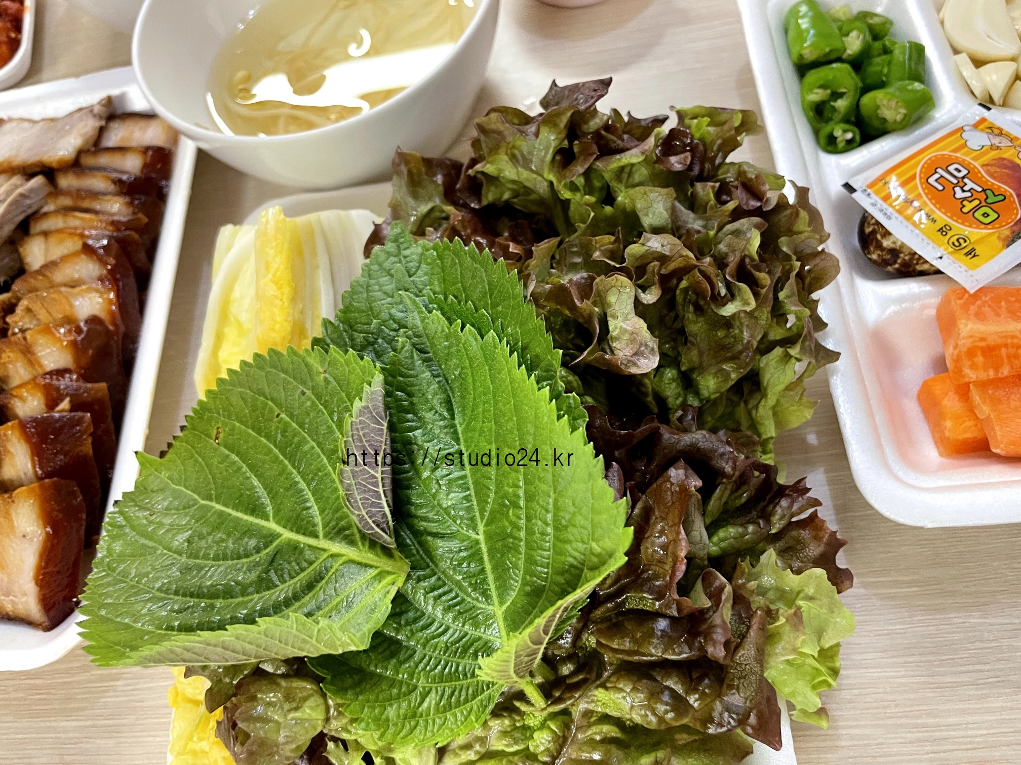 절임 배추까지 제공해 주어서 맛있게 싸 먹었어요.