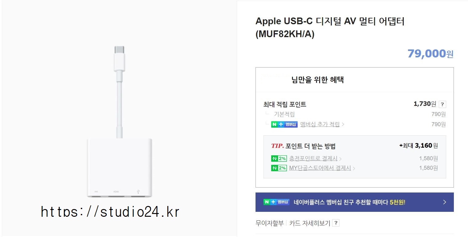 추가로 AV 멀티 어댑터도 정품으로 구입했어요.
