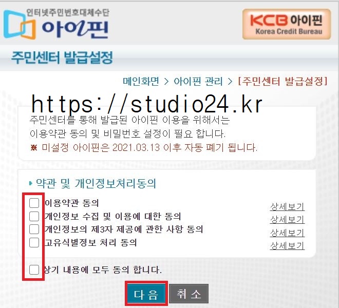 주민센터에서 아이핀 발급이 마무리되면, 비밀번호 재설정을 해줘야 합니다.