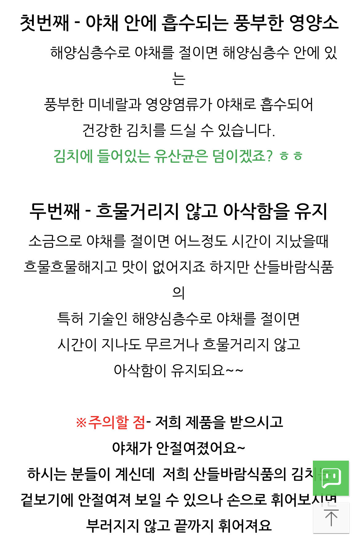 해양심층수로 절여서 건강한 김치를 먹을 수 있다고 합니다.