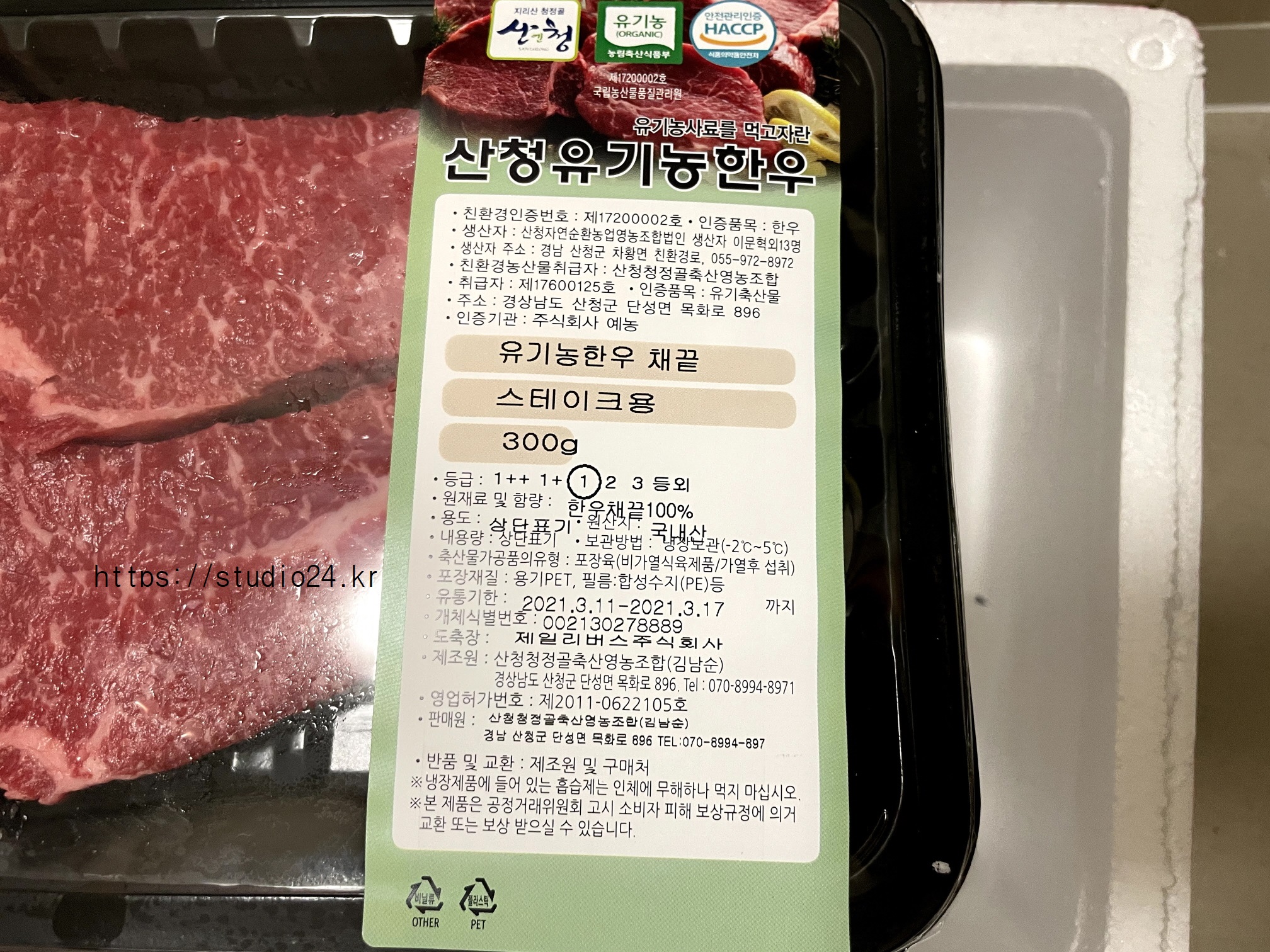 산청 유기농 한우를 미리 주문해서, 주말에 먹었어요.