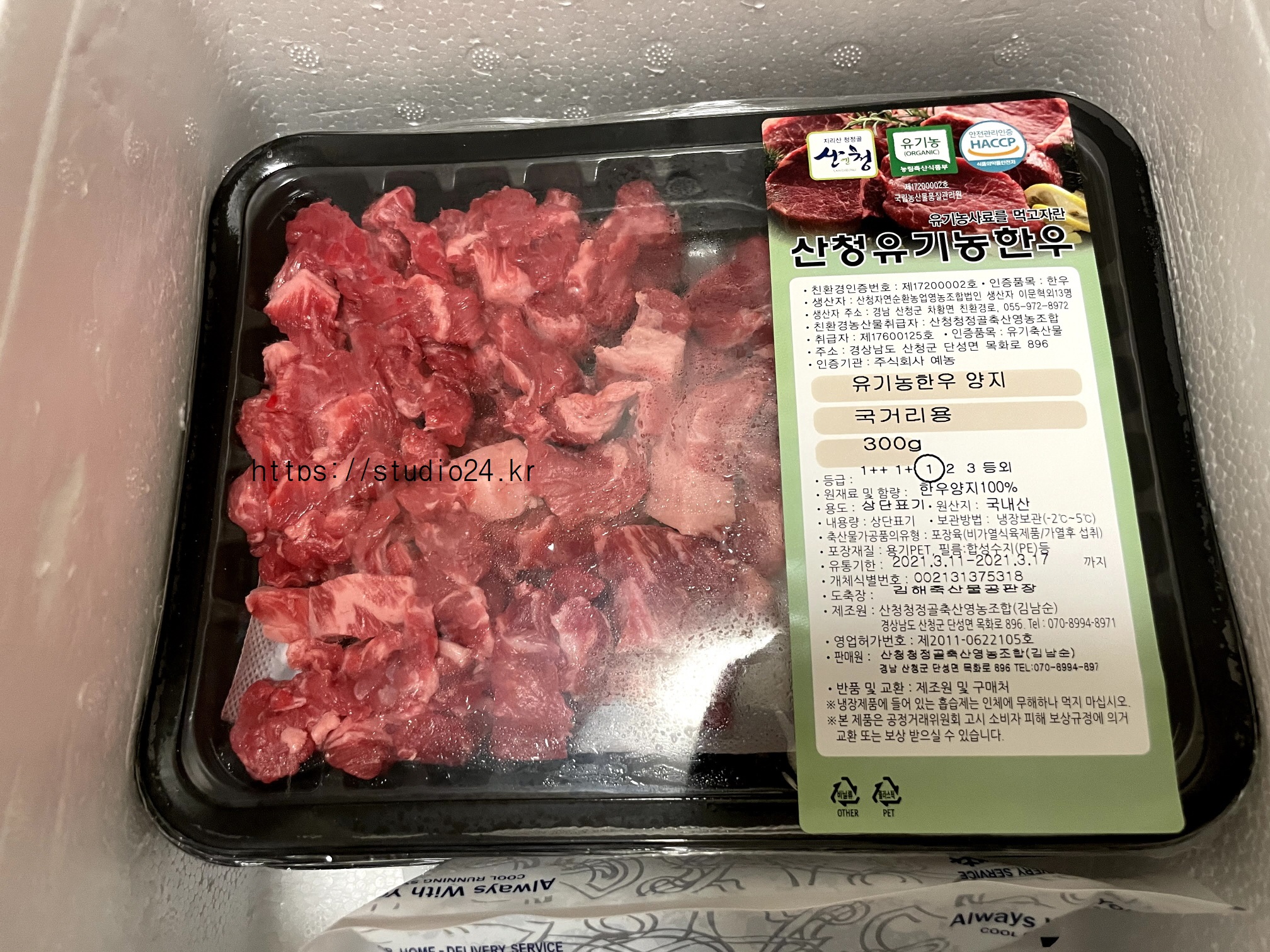 미리 주문한 산청 유기농 한우는 아이스박스에 포장이 잘 되어 도착했습니다.