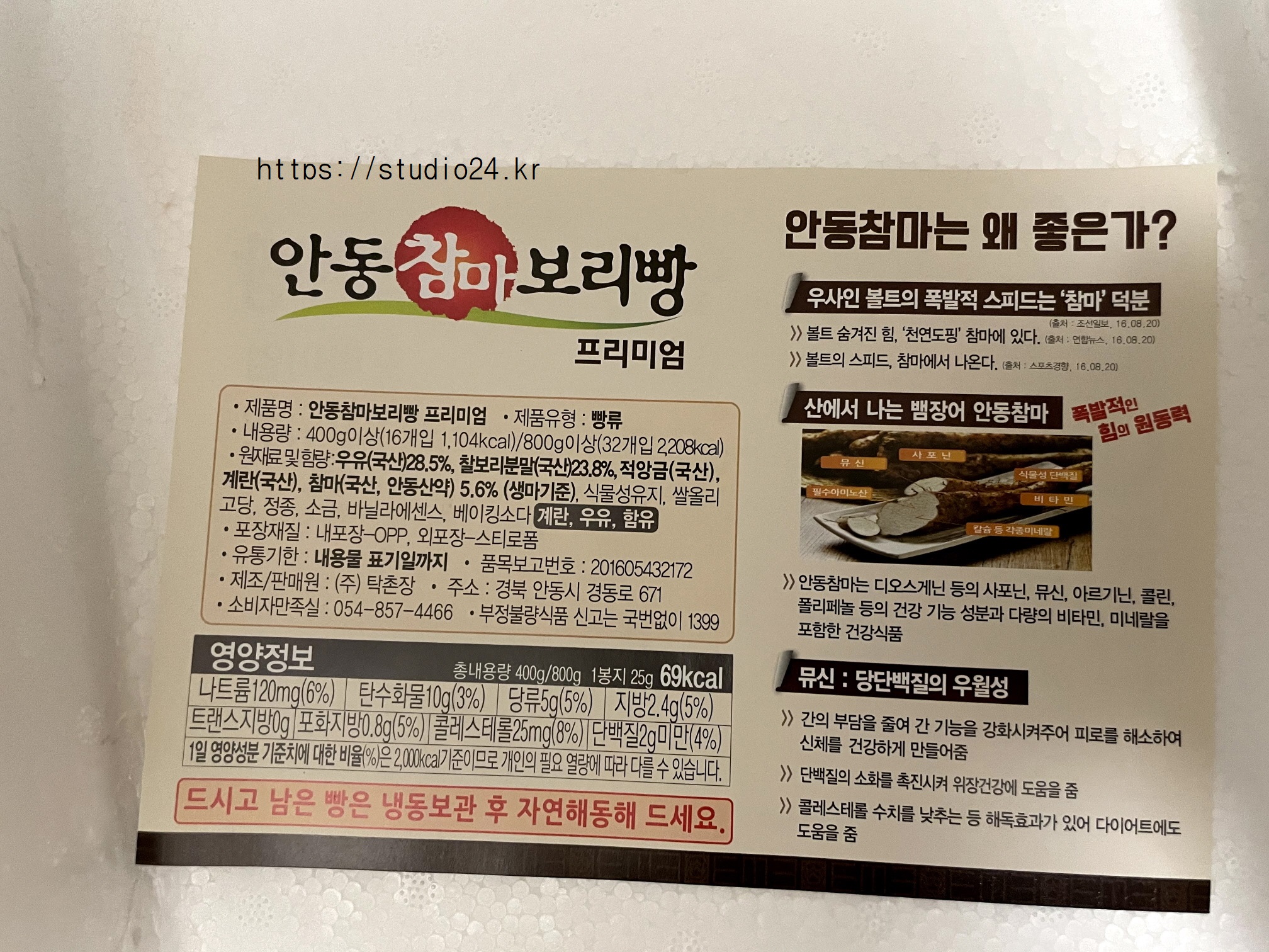 생우유, 쌀올리고당, 안동참마와 찰보리로 만든 건강빵