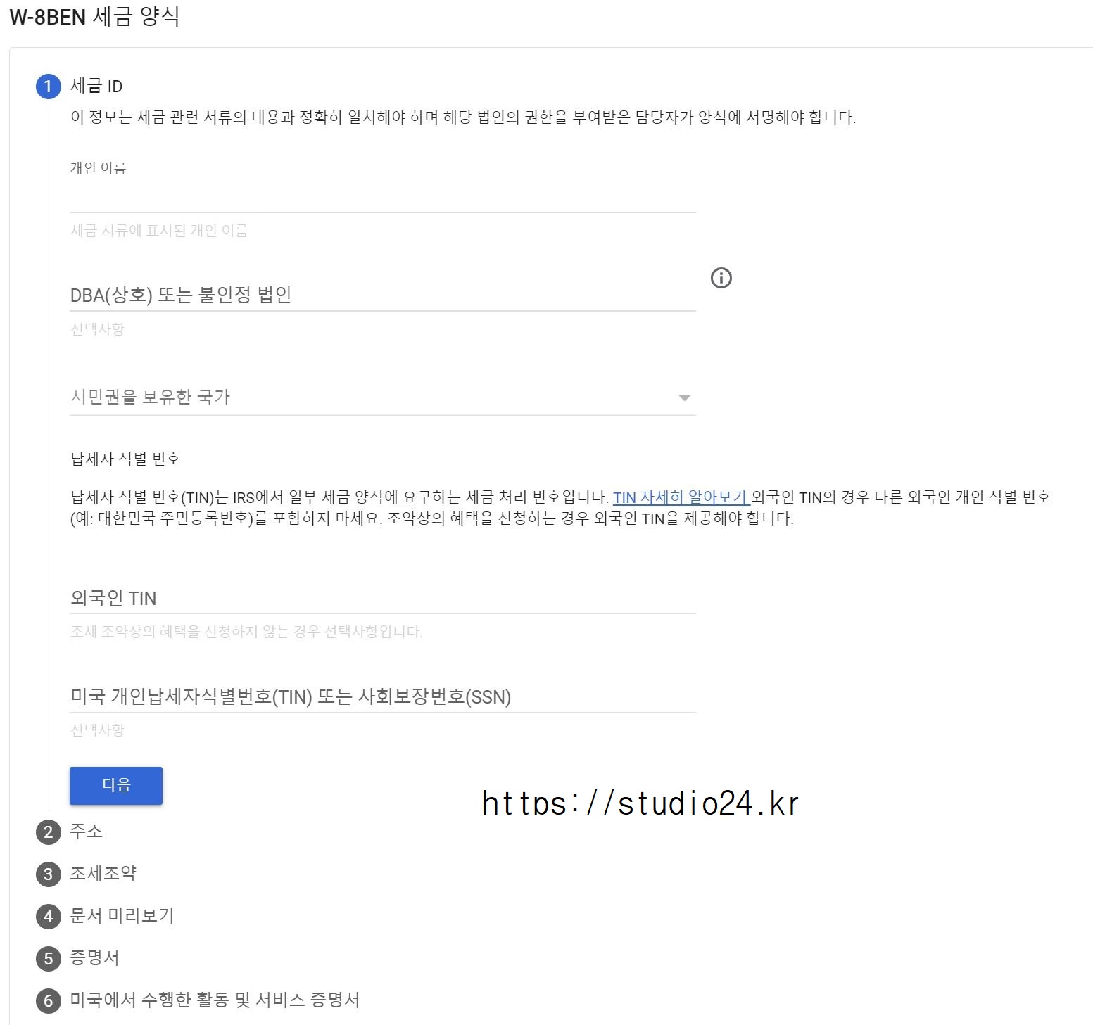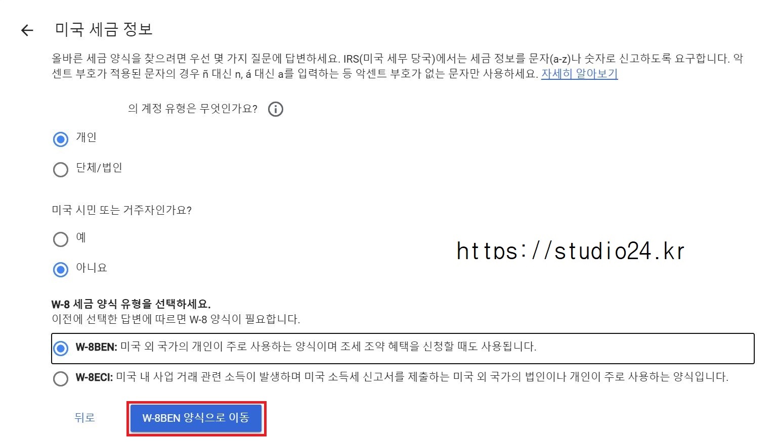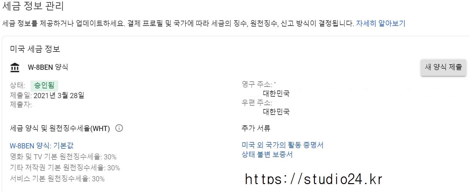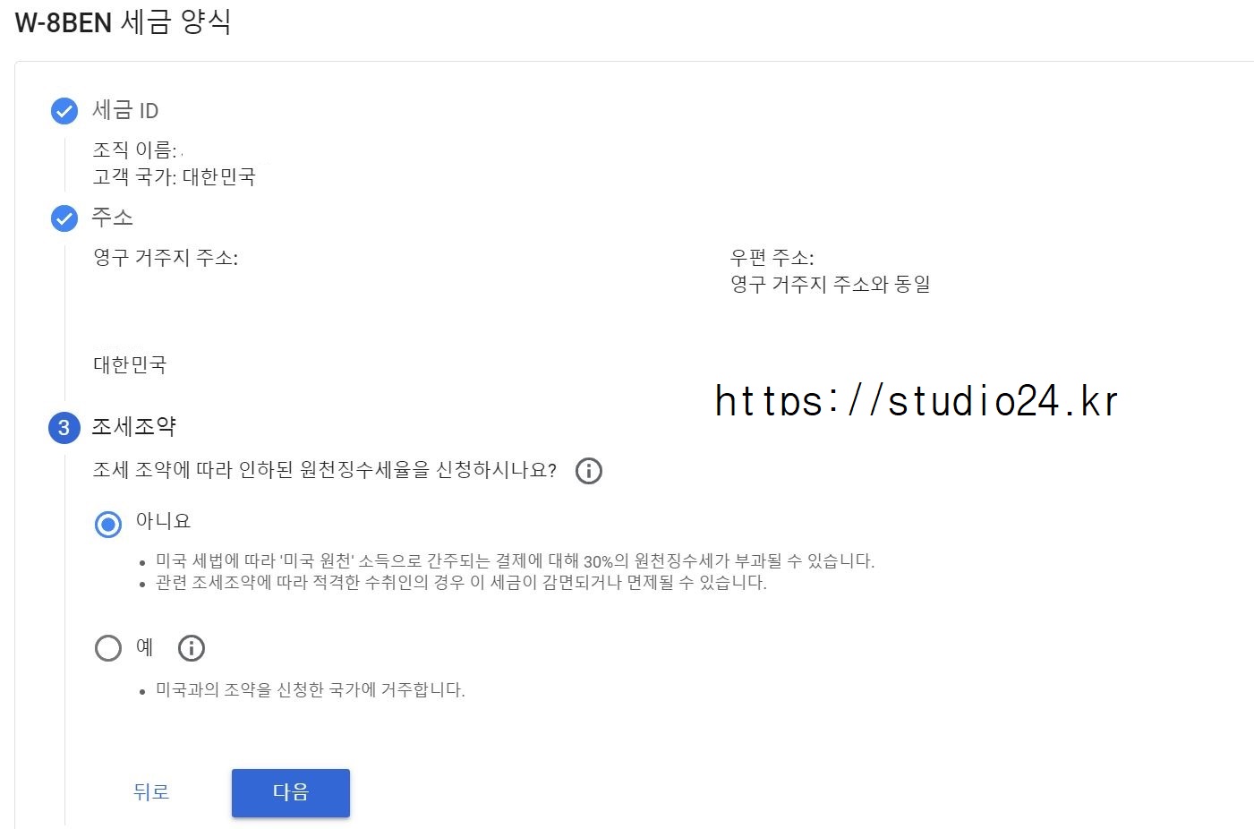 구글 애드센스 세금 정보 입력 방법, 개인 대상자